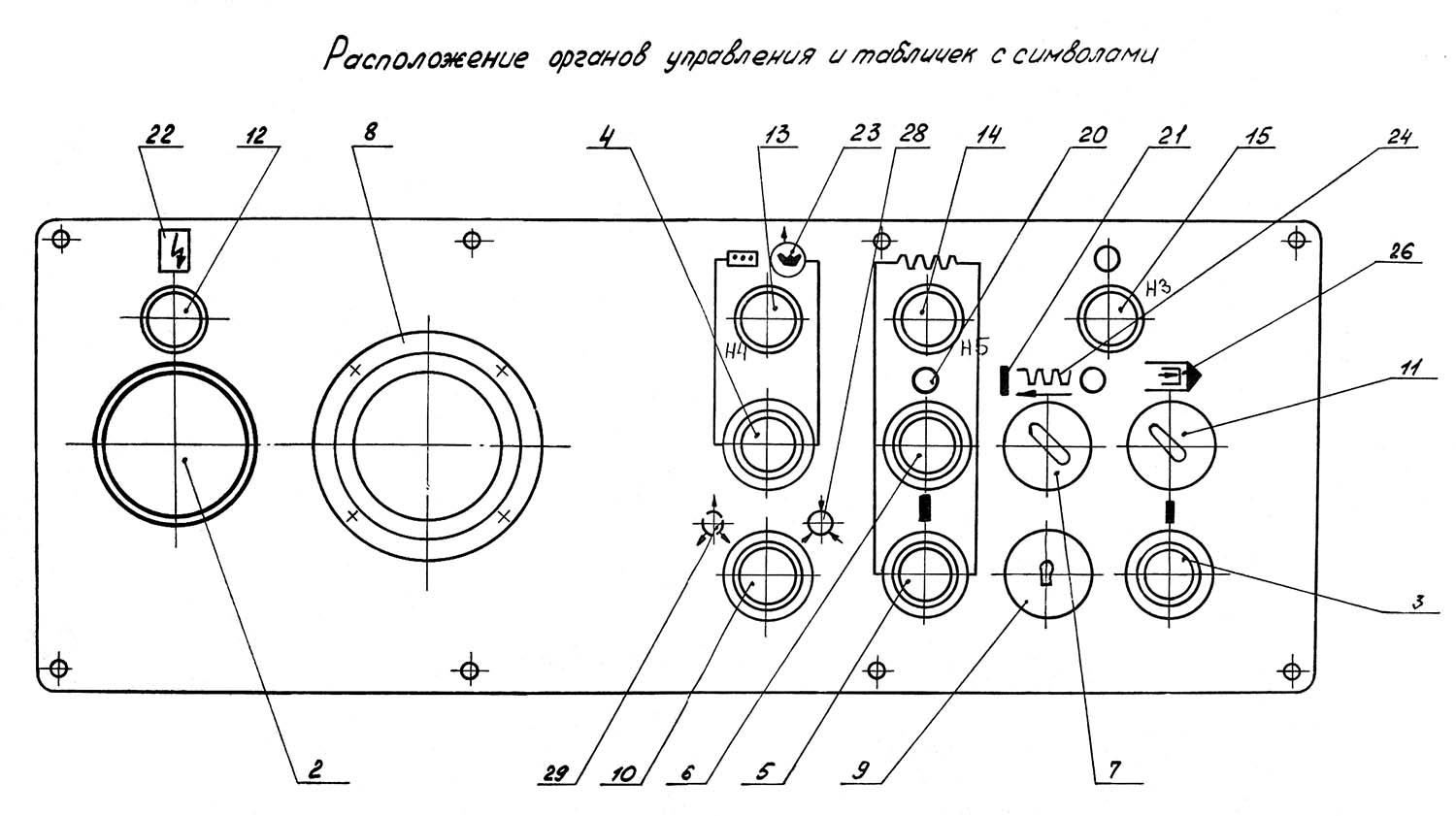 Розташування органів керування токарно-револьверним верстатом 1325Ф30