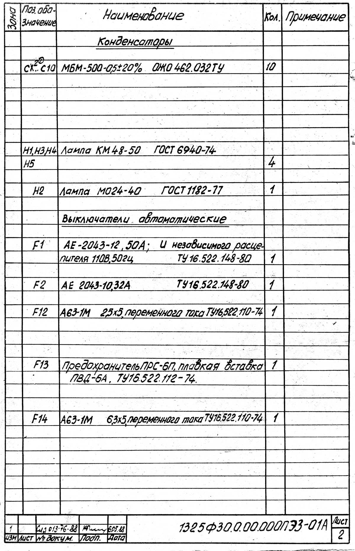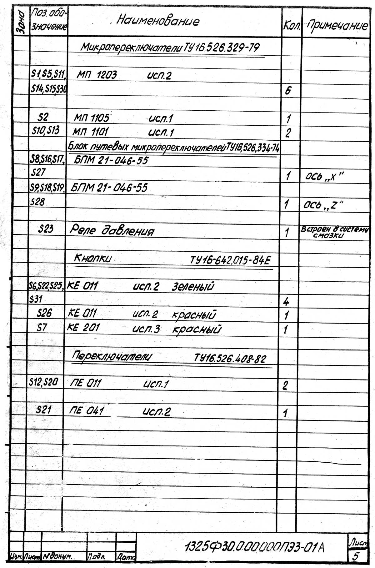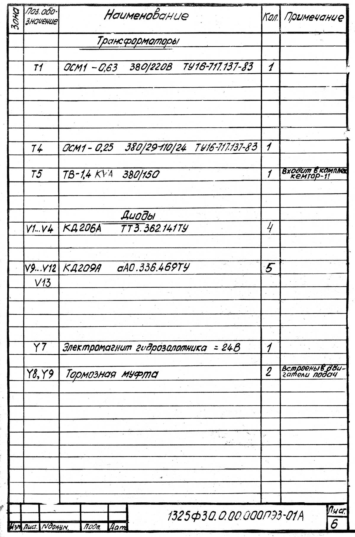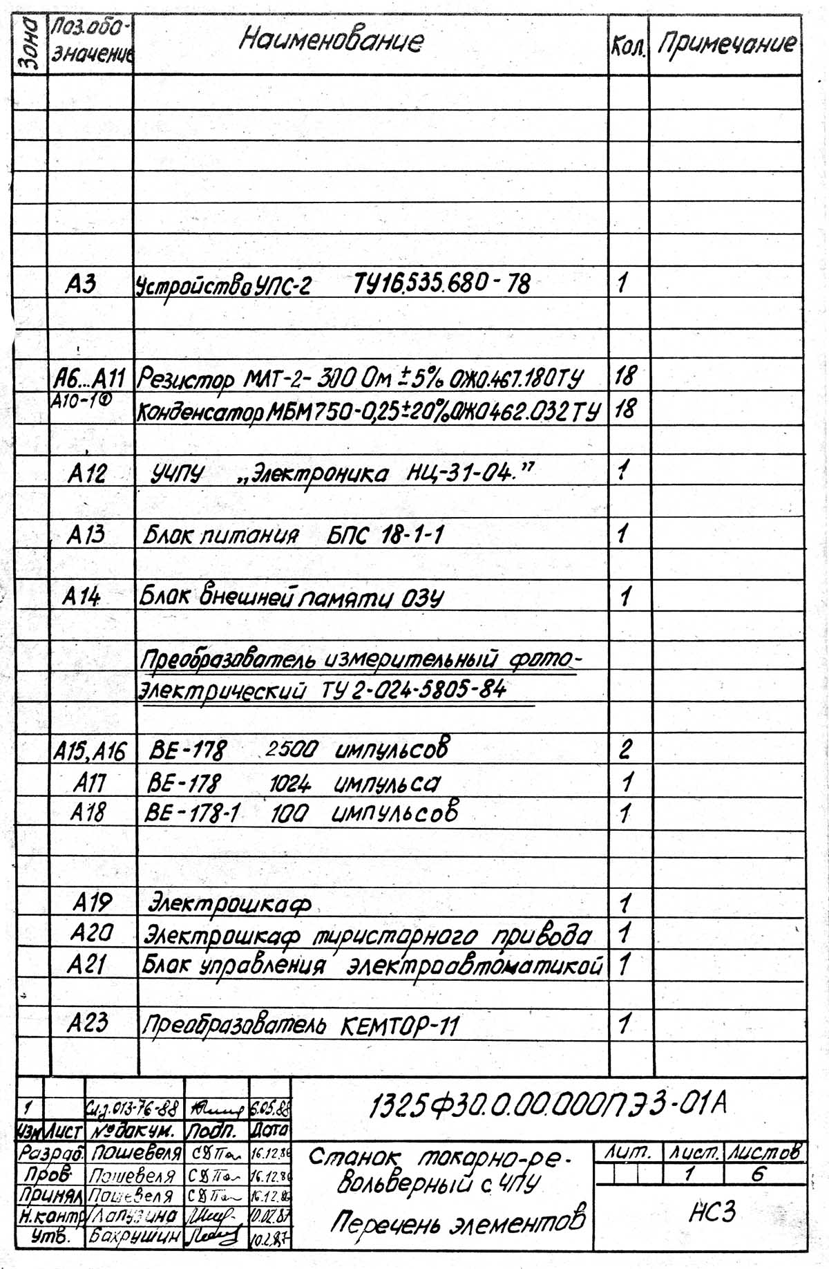 Список і основні назначения елементів електрической схеми приведены в таблице I (смотри также черт. 1325Ф30. 0.00.000 Э3-01А).