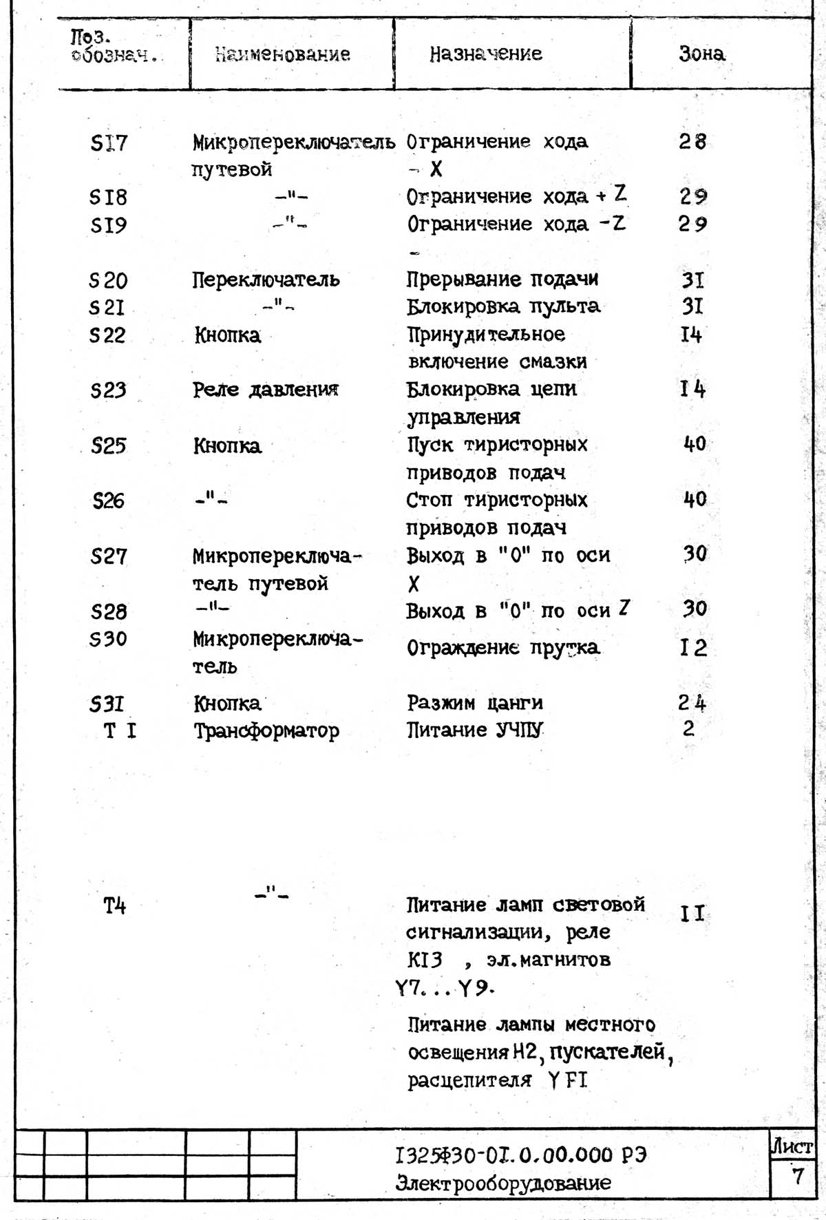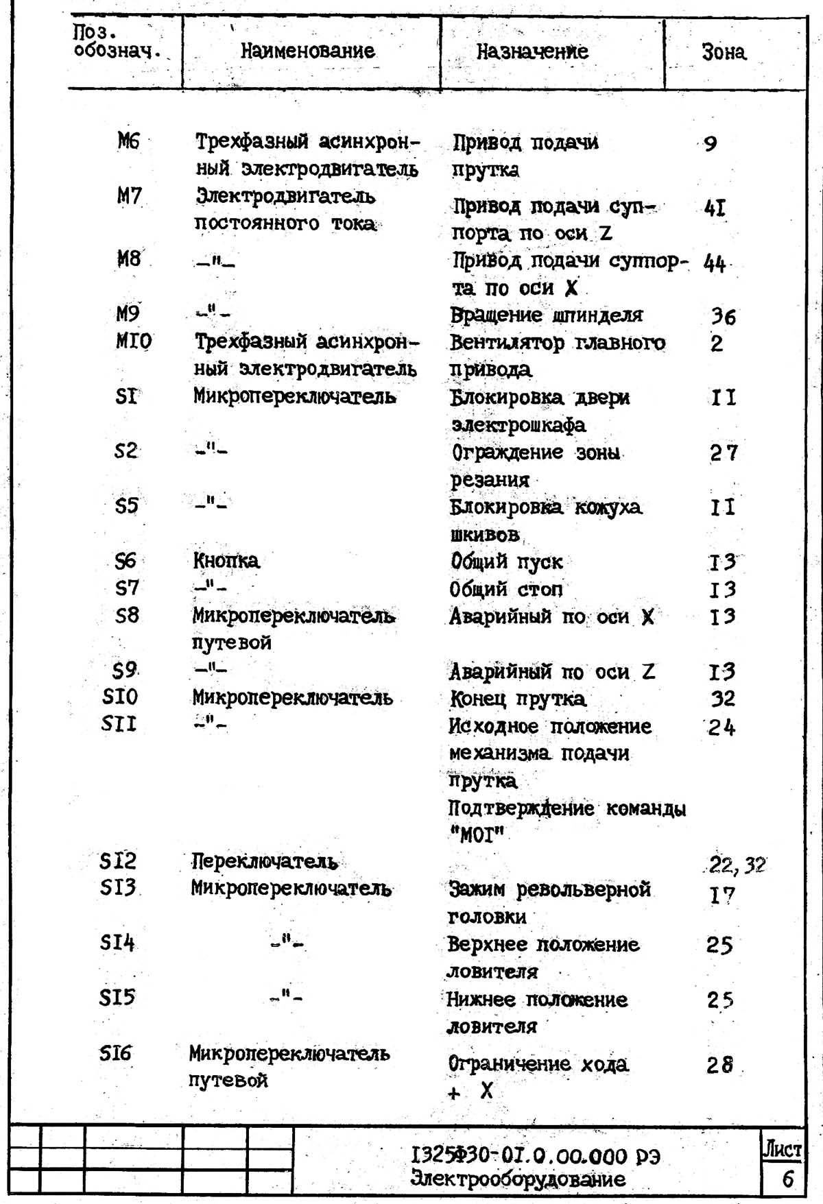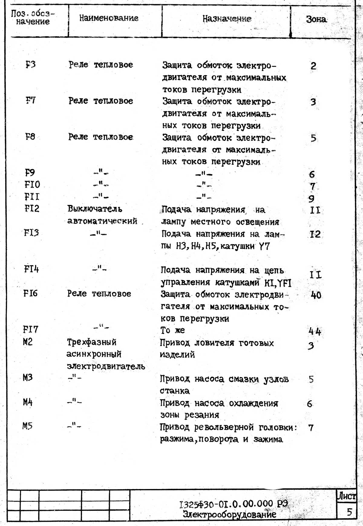 Схема електрична токарно-револьверного верстата 1325Ф30