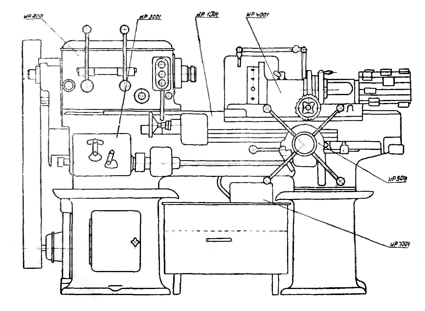 Розташування органів керування токарним верстатом 1336ІР