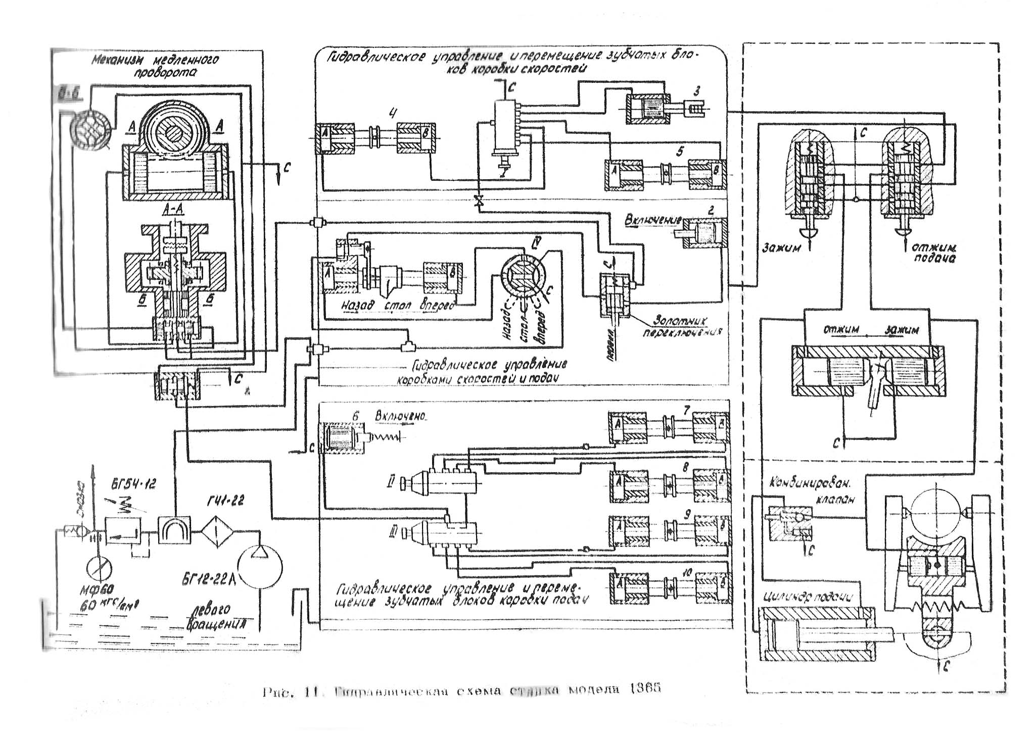 Схема преселективного гідравлічного керування верстатом моделі 1365. Дивитись у збільшеному масштабі