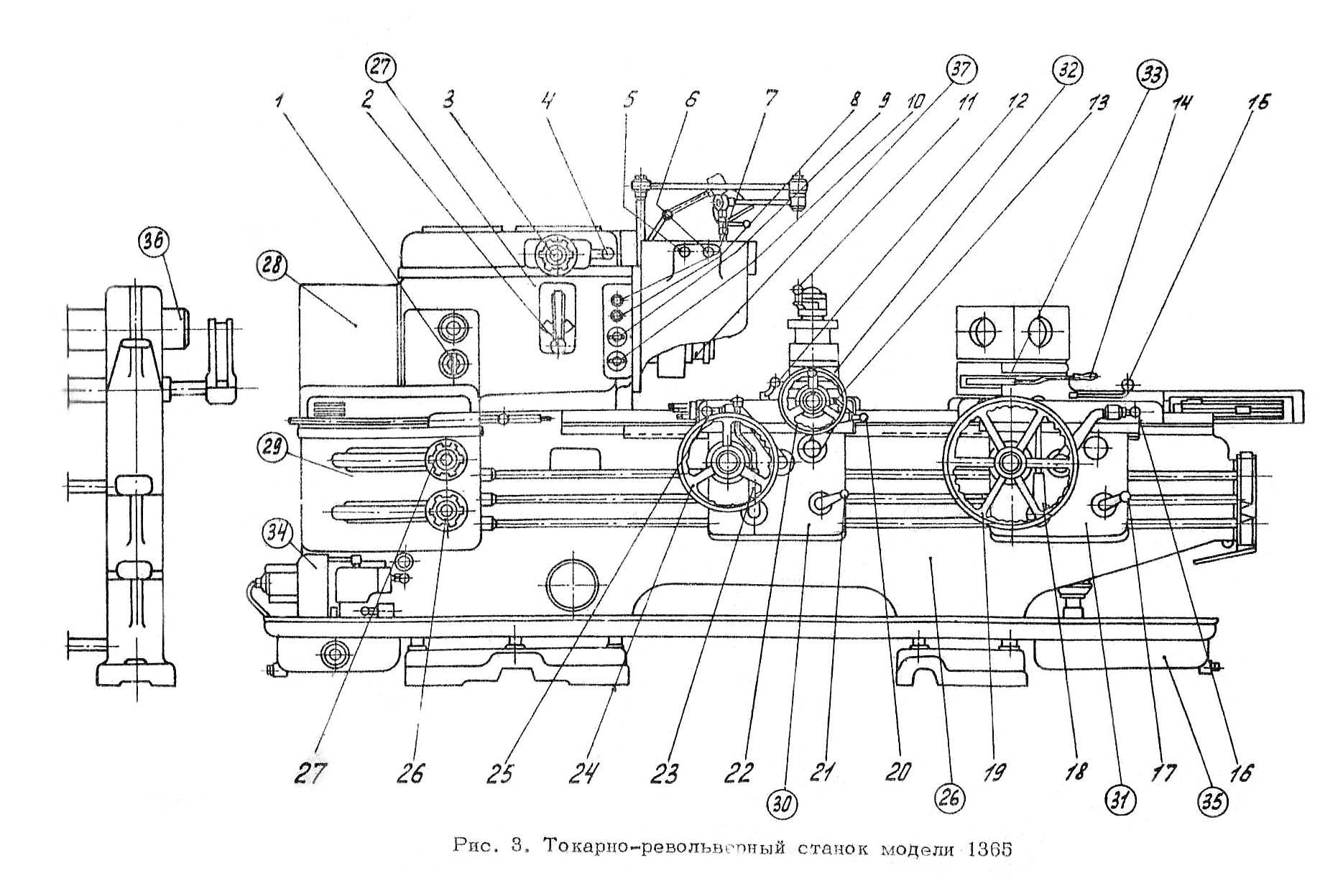 Розташування основних вузлів токарно-револьверного верстата 1365. Дивитись у збільшеному масштабі