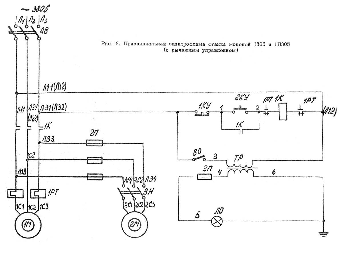 Електрична схема верстата 1365. Важільне керування