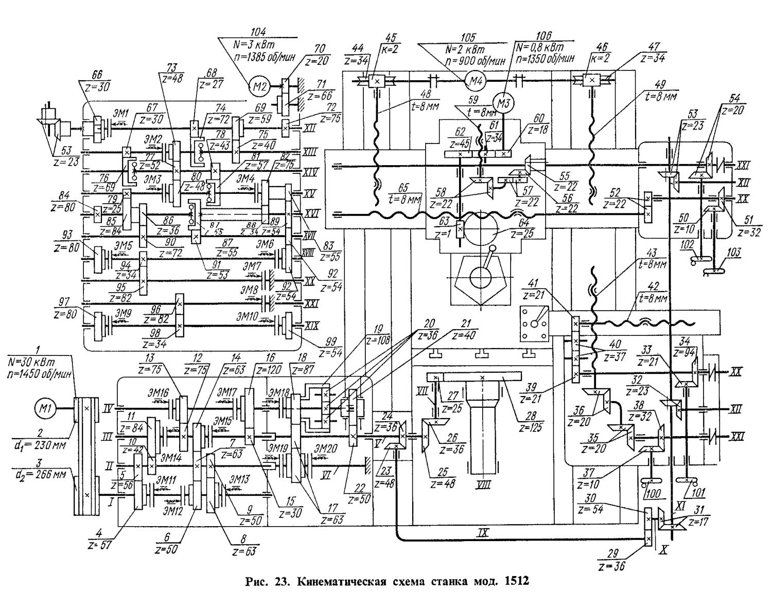 Схема кінематична токарно-карусельного верстата 1516. Дивитись у збільшеному масштабі