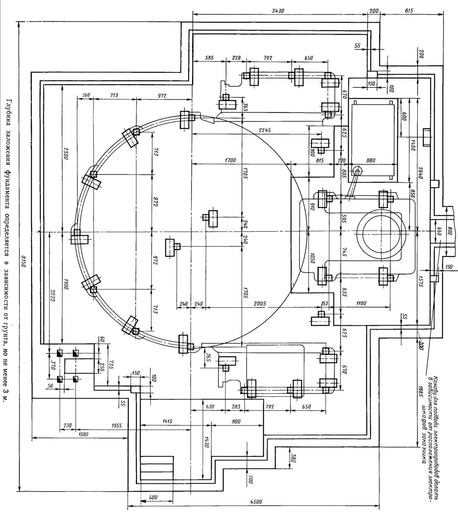 Креслення фундаменту токарно-карусельного верстата 1540Ф1. Дивитись у збільшеному масштабі