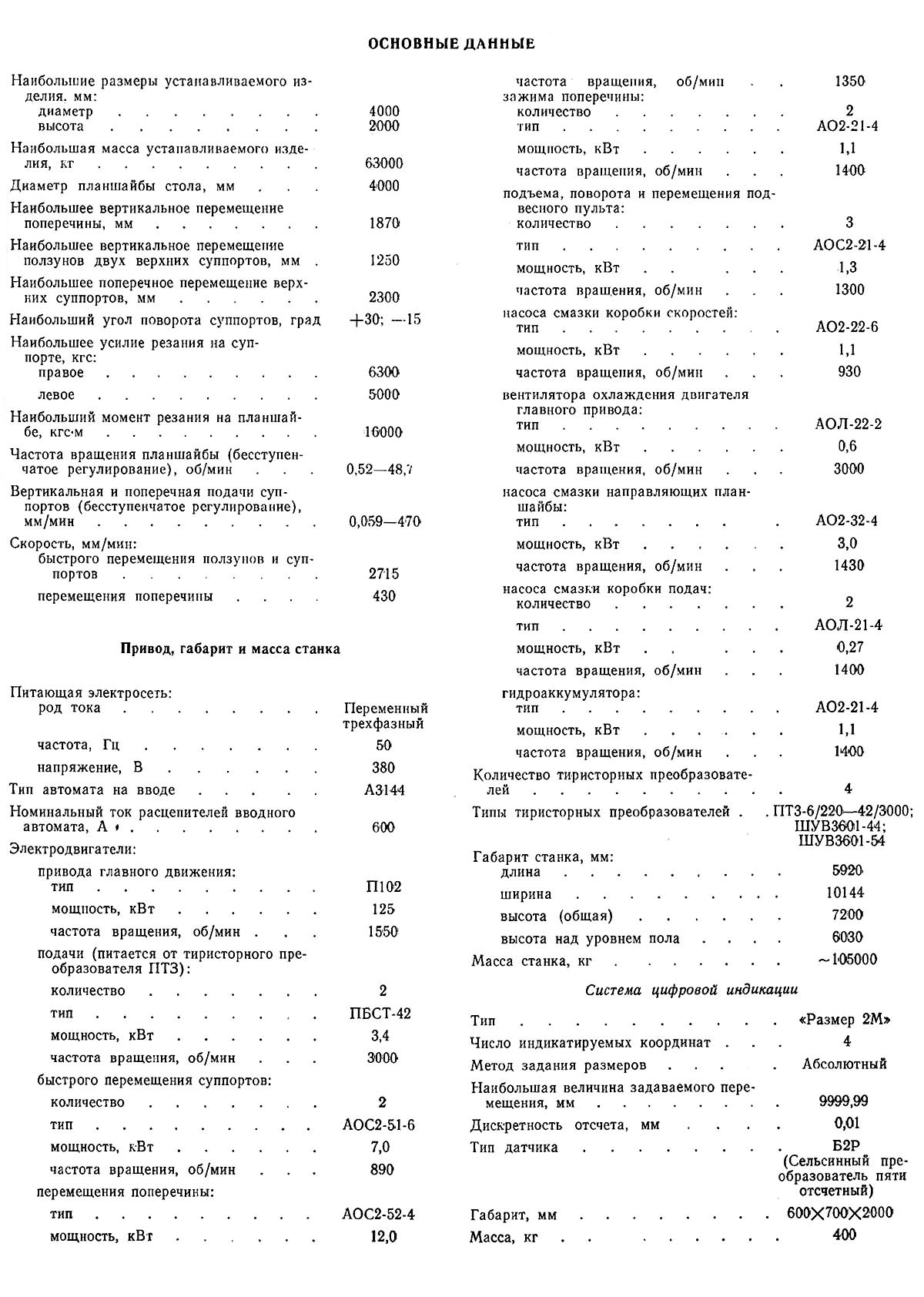 Найбільший діаметр виробу, що обробляється вертикальним та бічним супортами, мм. | 2500 | 4000 | 6300 |