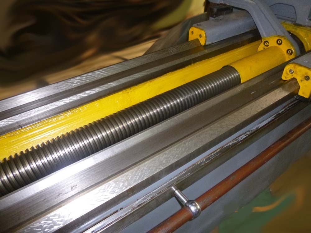 Величина додаткового поздовжнього переміщення супорта за один оборот шпинделя залежить від кута у повороту гайки з коригувальною лінійкою, яка розташована із задньої сторони станини на спеціально оброблених поверхнях.