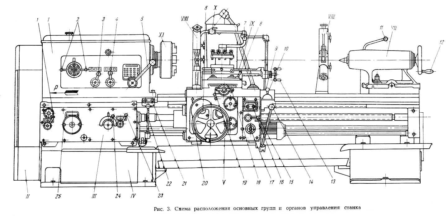Розташування органів керування токарним верстатом 163