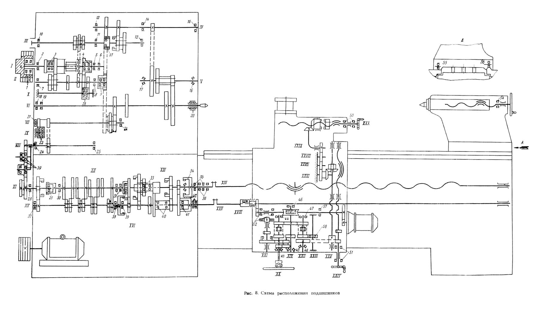Схема розположення підшибників токарного верстата моделі 163