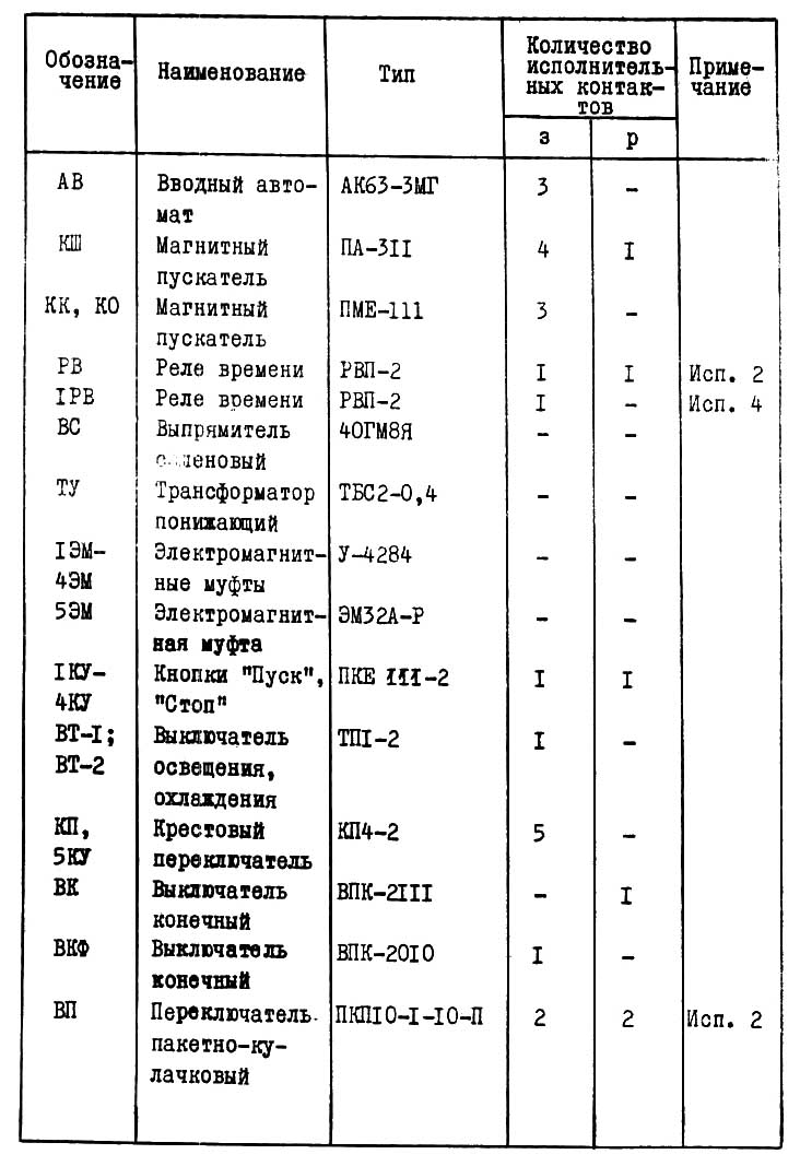 Одновременно з катушками пускателя КШ і реле часу IPB через замыкающий блок-контакт IPB (17-23) получит питание реле часу РВ. Если фрикцион не будет переведен Б рабочее положение в течений часу, на которое настроено реле РВ, то післяднее своими размыкающими контактами РВ (2-4) обесточит катушку магнитного пускателя КШ і реле часу 1РВ з післядующим остановом електродвигуна 1Д. При выключении катушки РВ замыкающим контактом (45-47) подключаются тормозная електромагнитная муфта 5ЭМ і сигнальная лампа 2ЛС. Останов головного двигуна 1Д осуществляется нажатием одной из кнопок "Стоп" - 3КУ, 4КУ, расположенных на каретке і около коробки подач.
