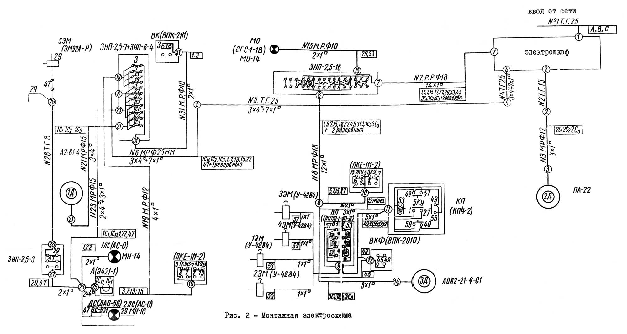 Керування електронасосом 2Д осуществляется посредством выключателя-тумблера ВТ-2, расположенного на боковой стенке електрошафи.