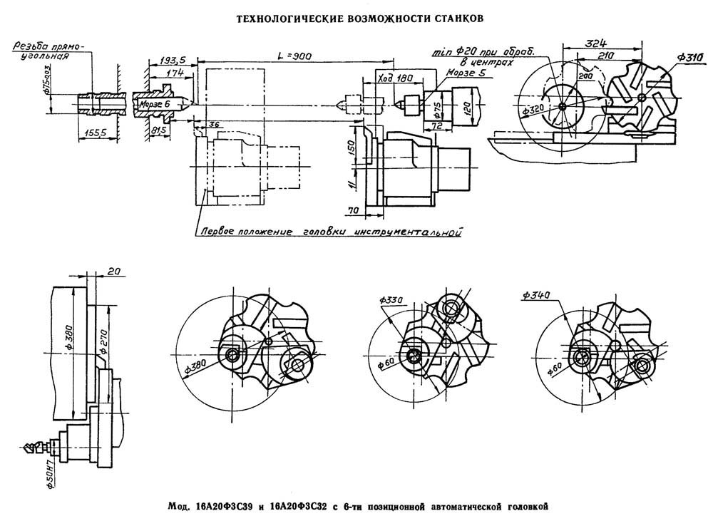 Карта можливостей верстата 16А20Ф3 з 6-позиційною револьверною головкою