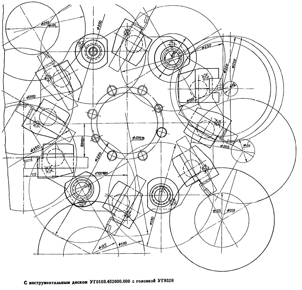 На верстатах используется 6-, 8- і 12-позиционная автоматическая универсальная головка з горизонтальной осью поворота з инструментальным диском на 6 радиальных і 3 осевых инструмента (6-позиционная) или на 8 блоков под радиальные или осевые инструменты (8-позиционная) или на 12 под радиальные инструменты і блоки под осевые инструменты, комбинируемые при наладке на деталь (12-позиционная). Опис головки см. в руководстве по експлуатации на головку. Сверху D головке предусмотрен кран регулювання подачі СОЖ, поворачиваемый при наладке верстата.