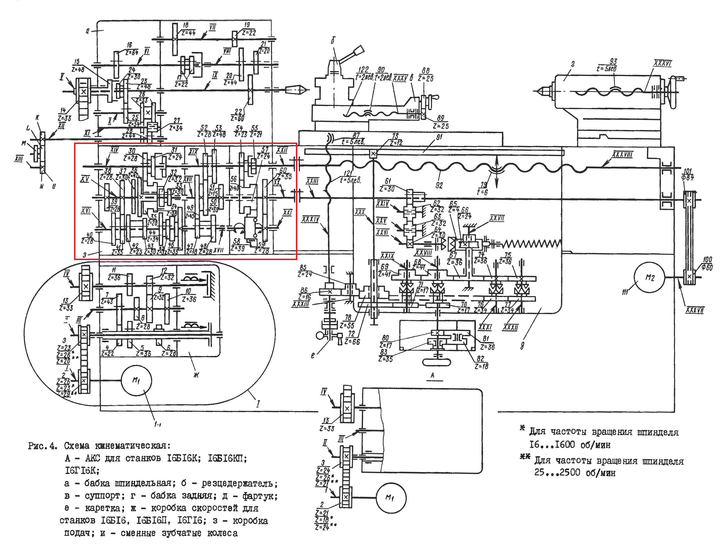 Кінематична схема токарно-гвинторізного верстата 16Б16