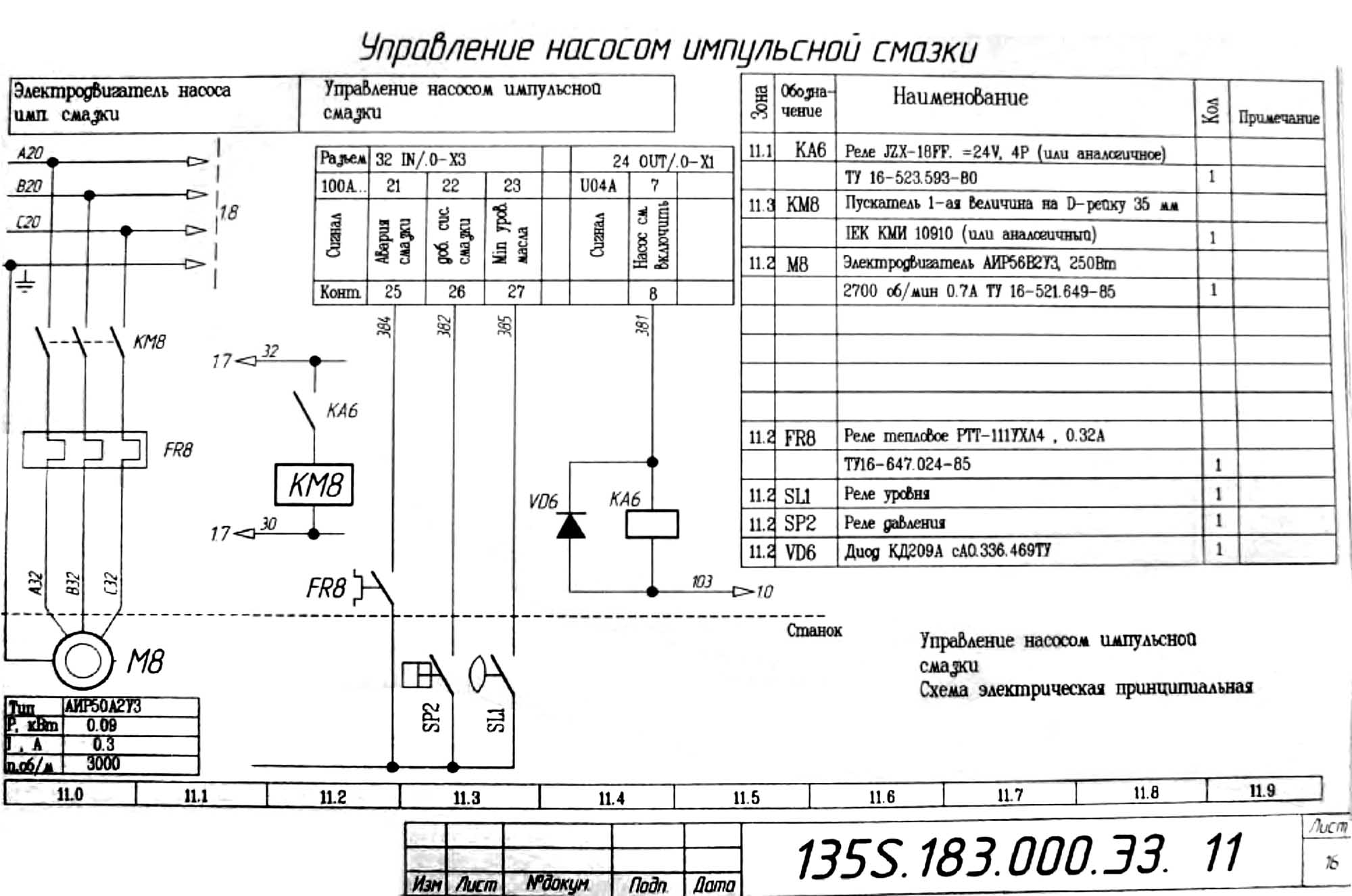 Схема електрична керування насосом импульсной змазки токарного верстата 16Б16Т1