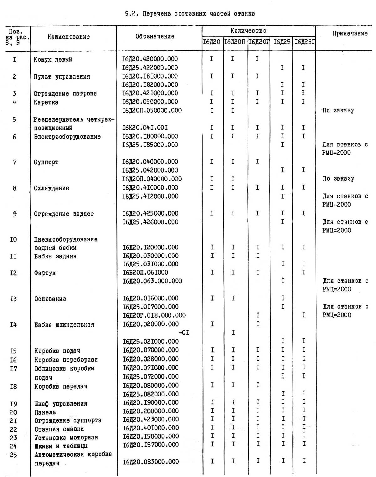 Верстати 16Д20П, 16Д20Г, 16Д25, 16Д25Г виконані на базі основної 16Д20 з максимальною уніфікацією, мають однакові кінематичні схеми та уніфіковану конструкцію: