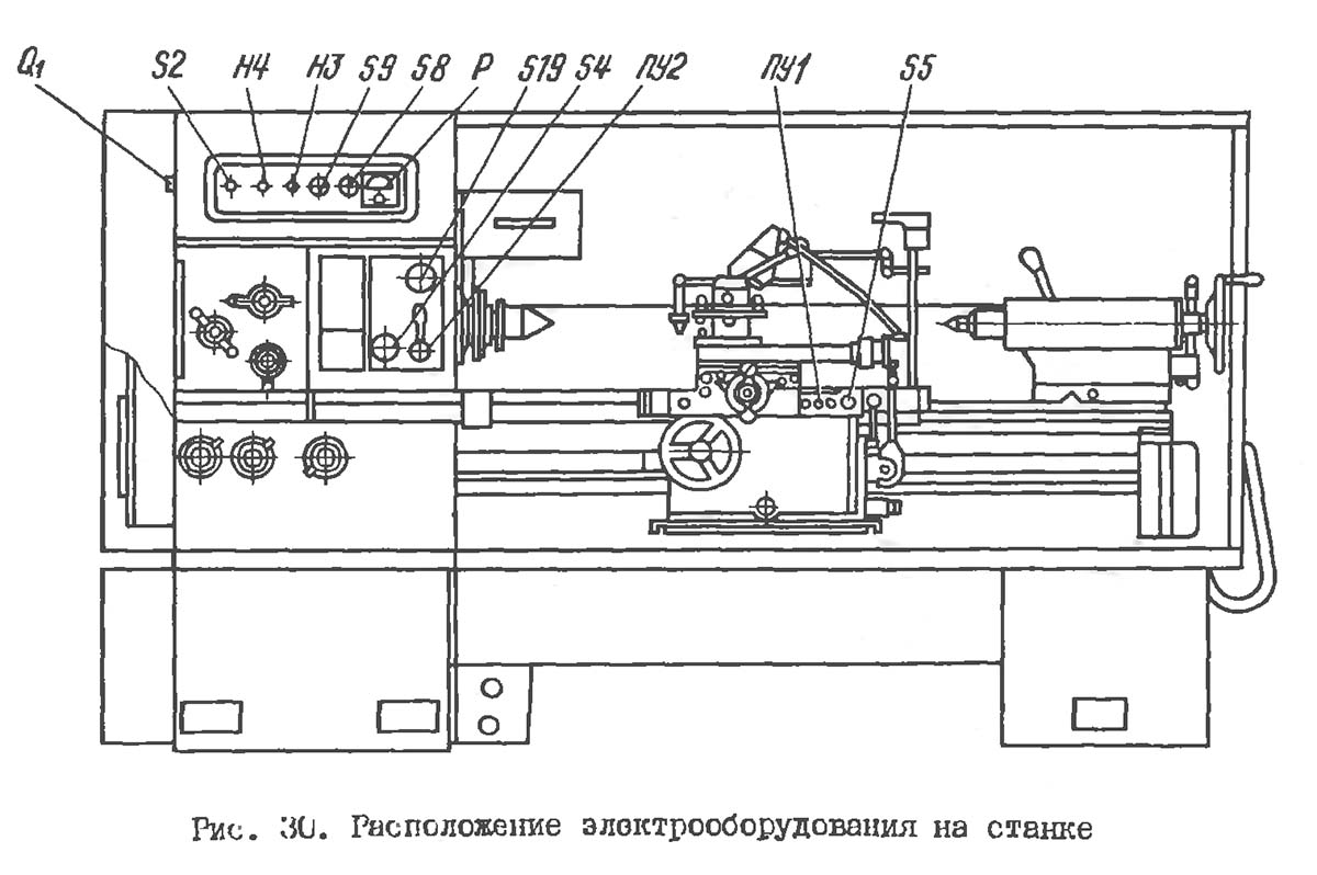 Размещение електроустаткування на токарно-винторезном станке 16Д20