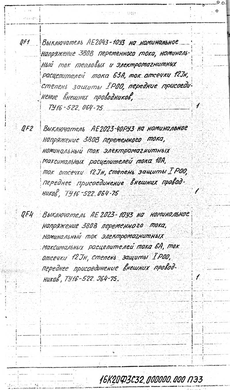 1. Захист електродвигуна от токов коротких замыканий осуществляется автоматическим выключателем типа АК63-3М. Значение номинальных токов і токов уставки автоматов даны на принципиальной схеме ставка.