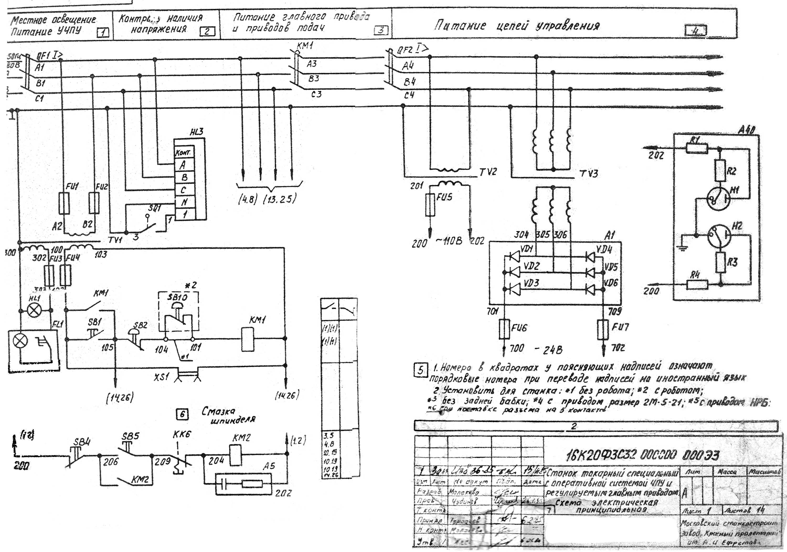 16К20Ф3 Схема електрична токарного верстата з ЧПУ