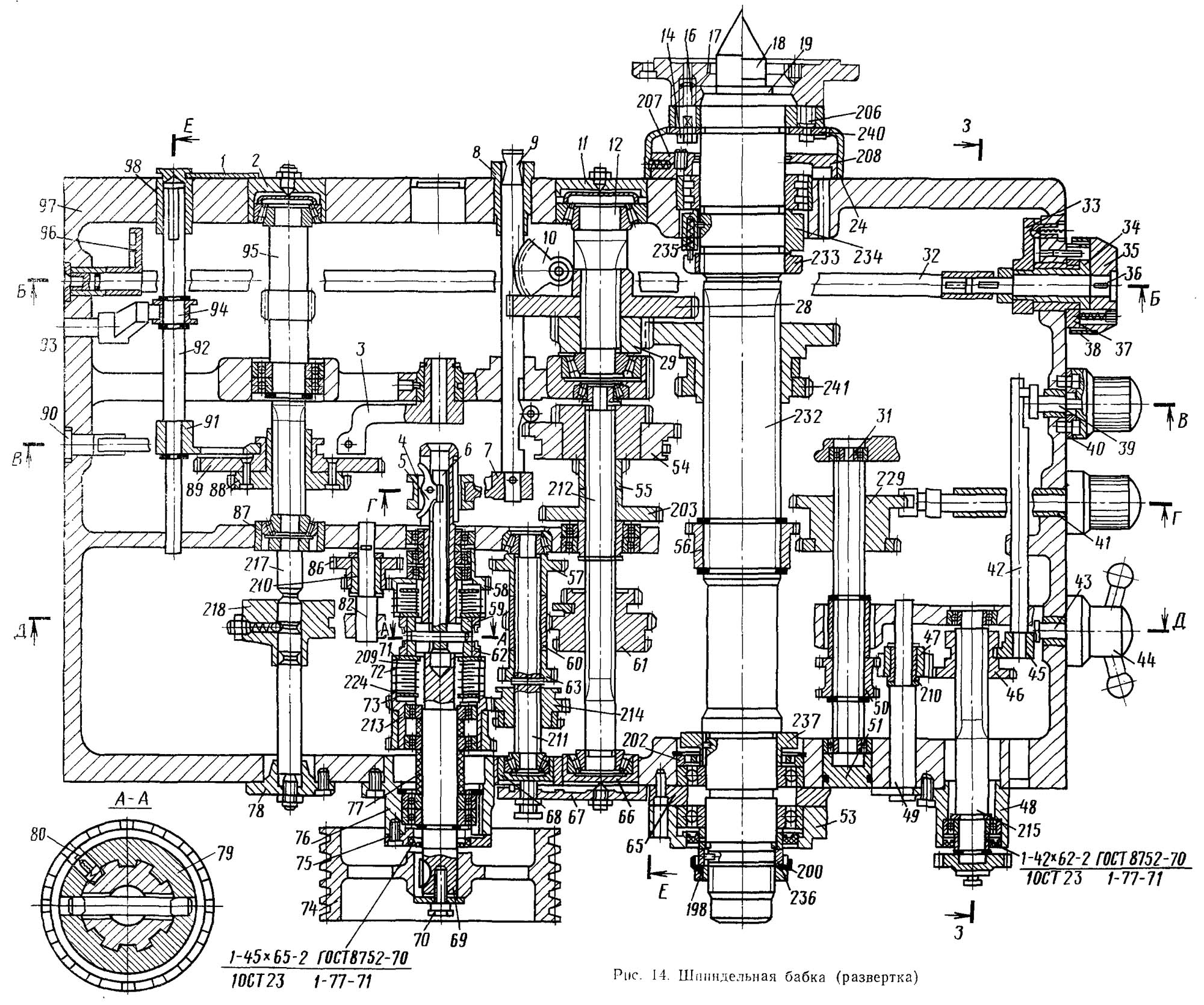 Шпиндельная бабка токарно-гвинторізного верстата 16вт20п. Развертка. Скачать в увеличенном масштабе