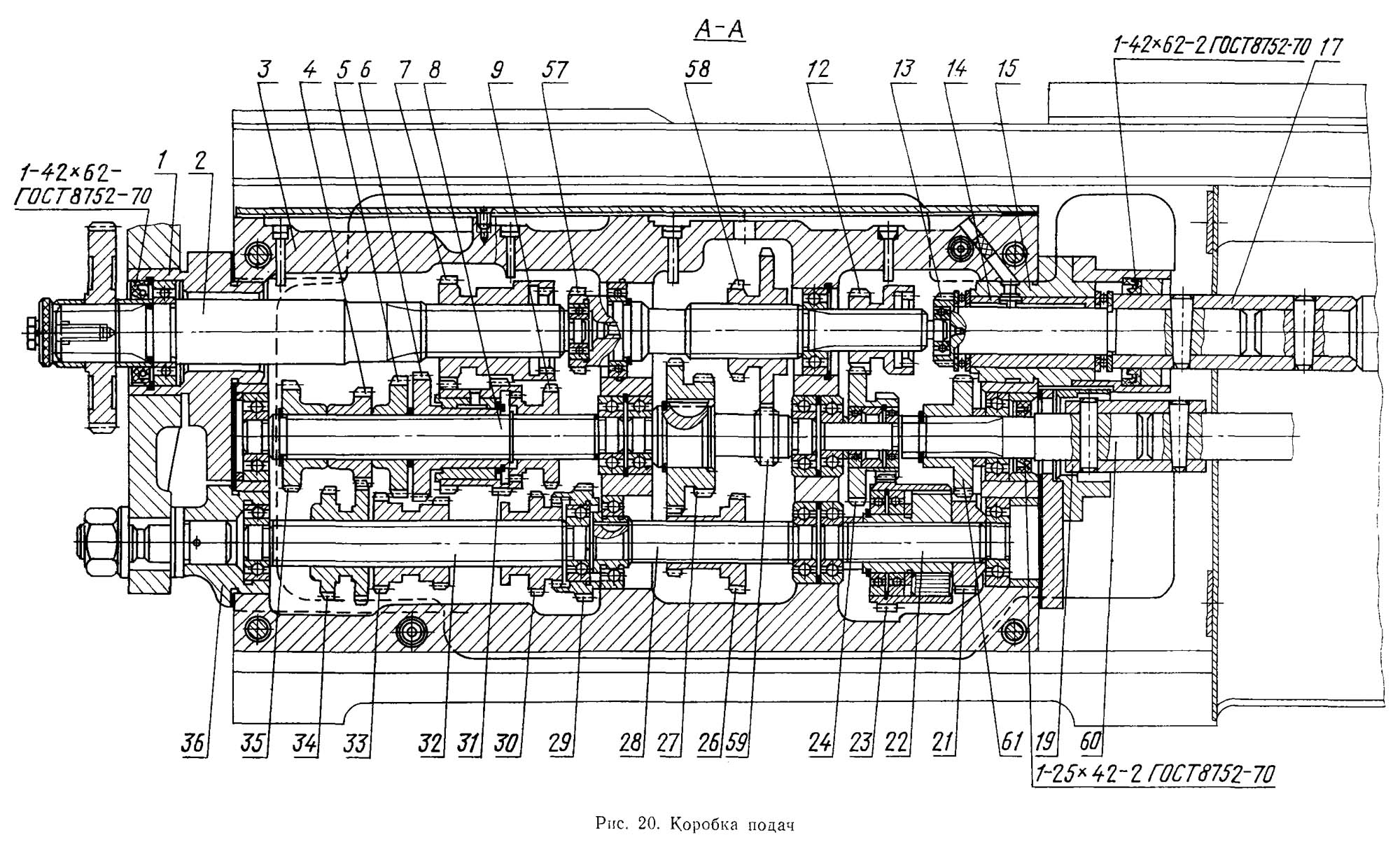 Коробка подач токарно-гвинторізного верстата 16вт20п. Разрез Г-Г