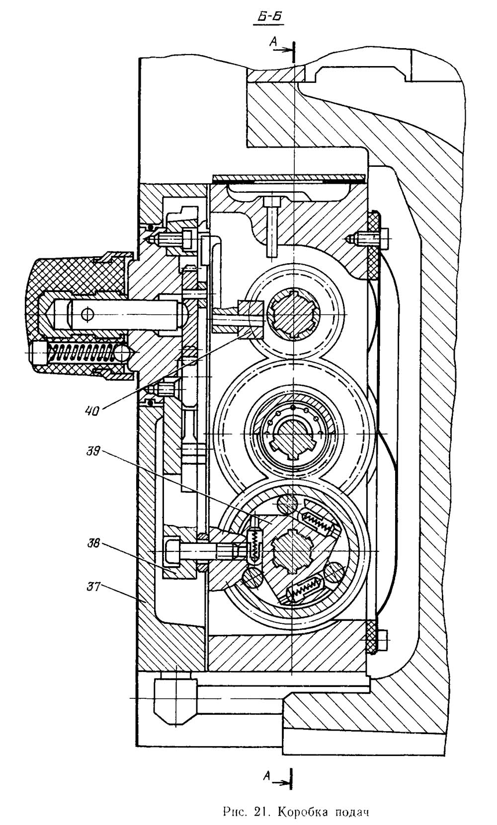 Коробка подач токарно-гвинторізного верстата 16вт20п. Разрез Б-Б