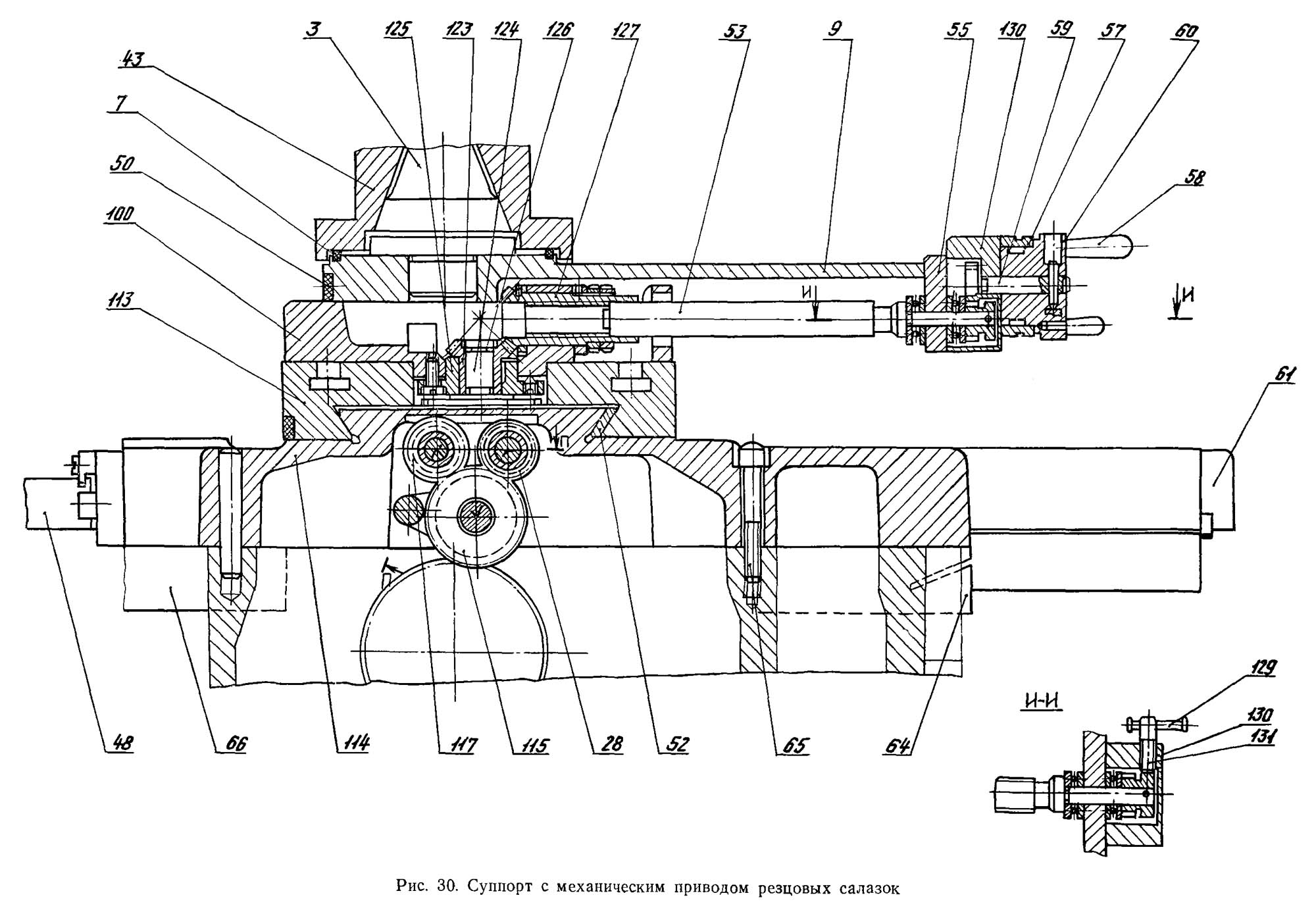Цифрой I обозначен супорт з механическим переміщенням резцовых салазок