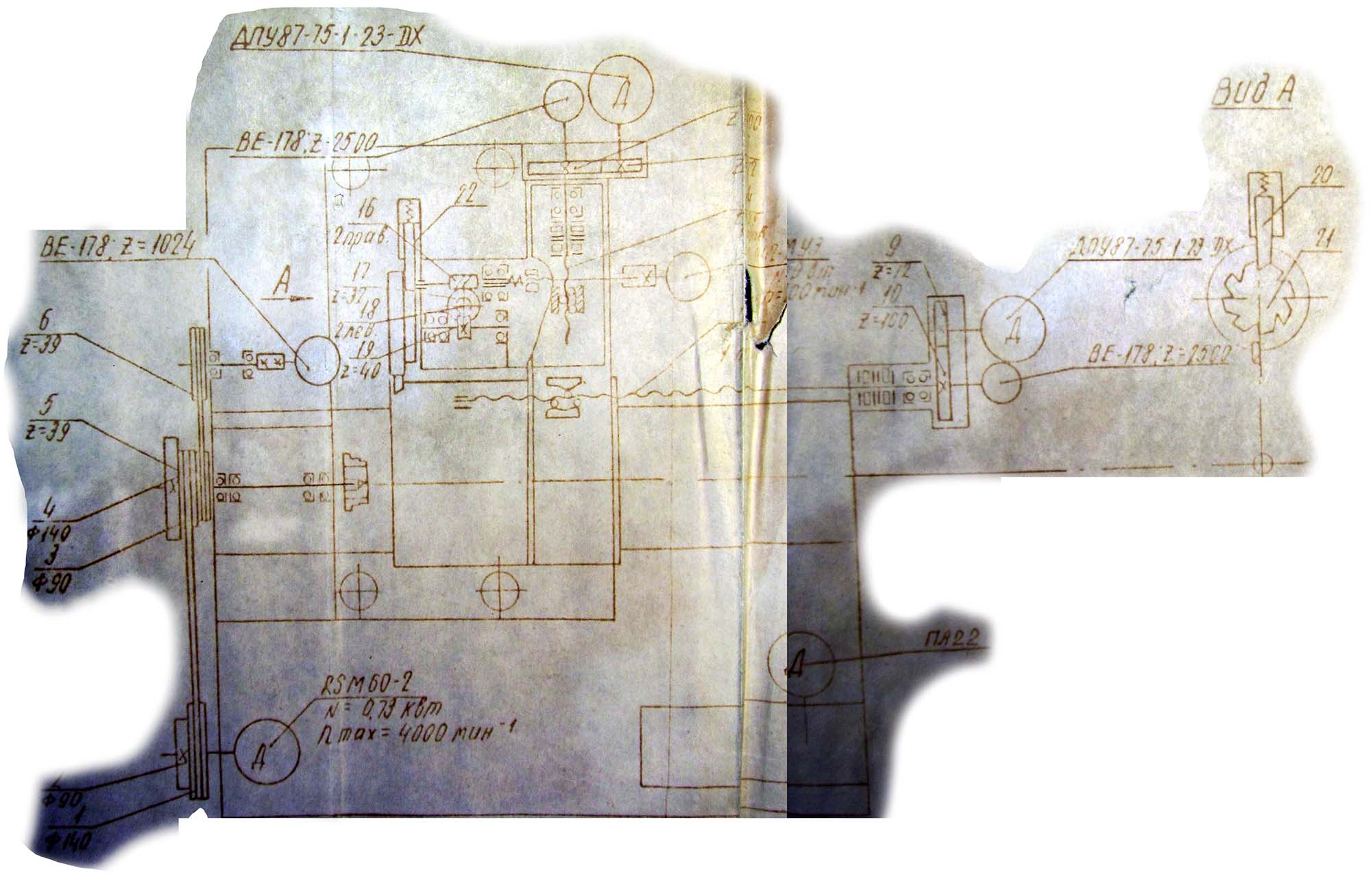 Схема кінематична токарного верстата 1700ВФ30. Дивитись у збільшеному масштабі
