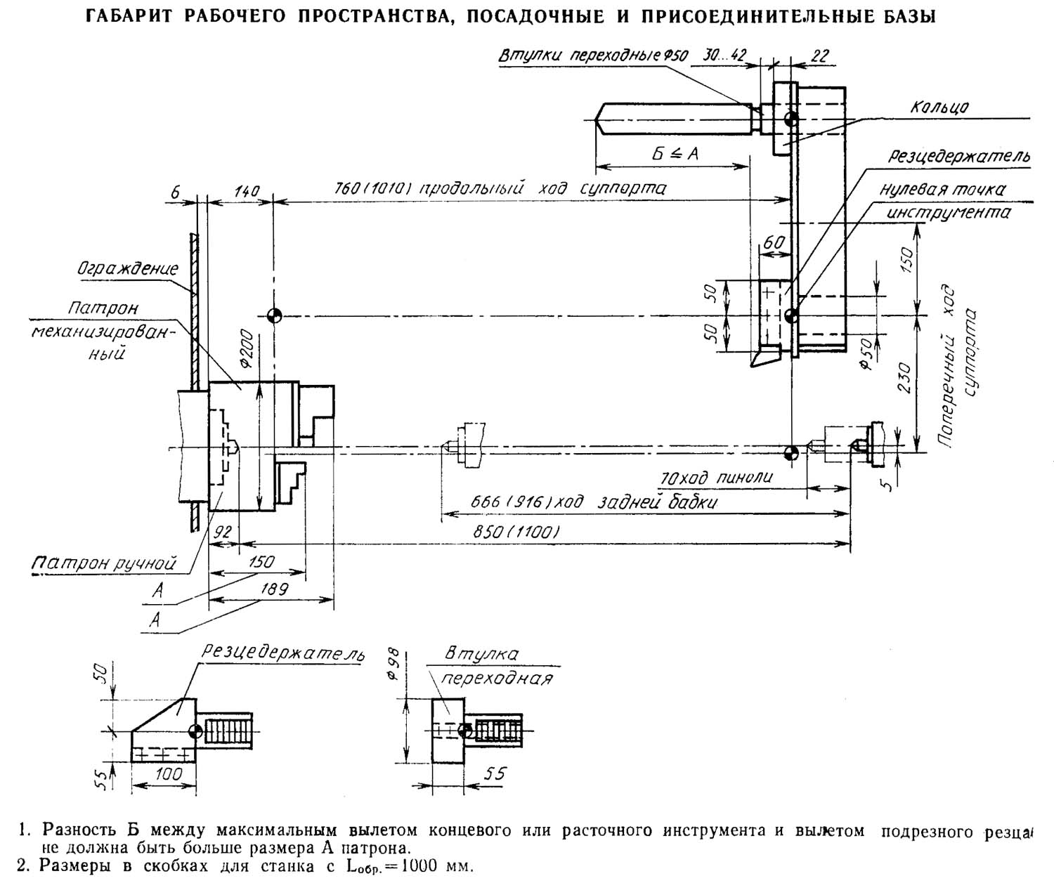 Габаритні розміри робочого простору токарного верстата 1716ПФ4. Дивитись у збільшеному масштабі