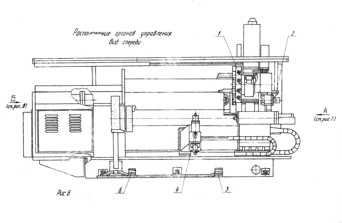 Розташування органів керування токарним верстатом 1740РФ3. Дивитись у збільшеному масштабі