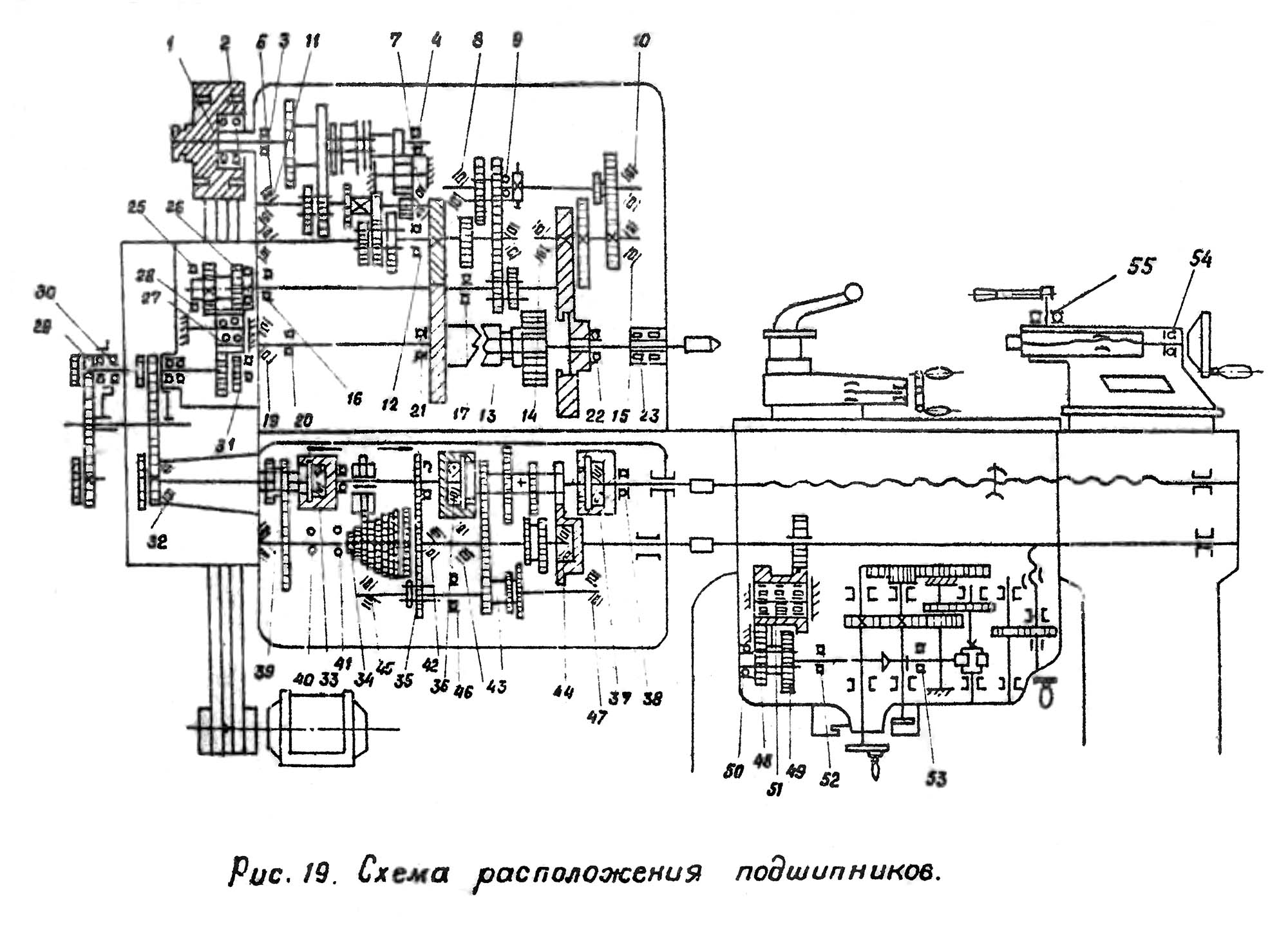 Схема установки підшибників токарно-гвинторізного верстата 1А62г. Дивитись у збільшеному масштабі