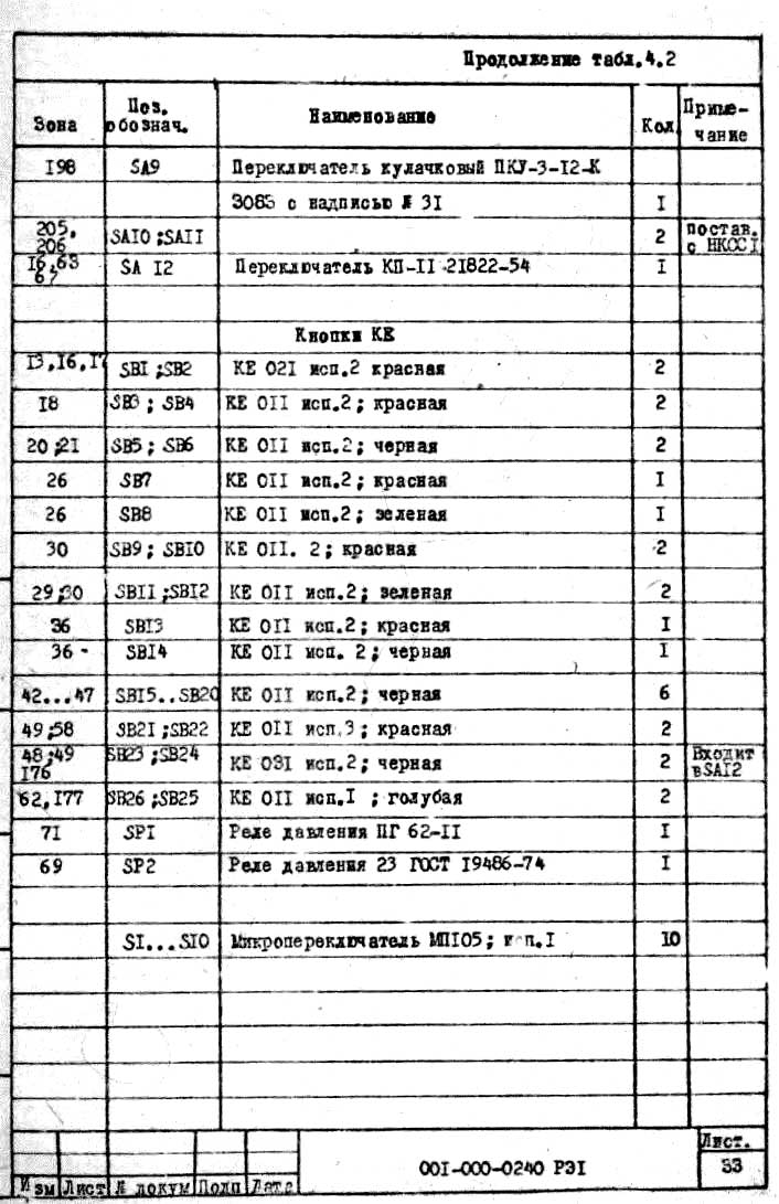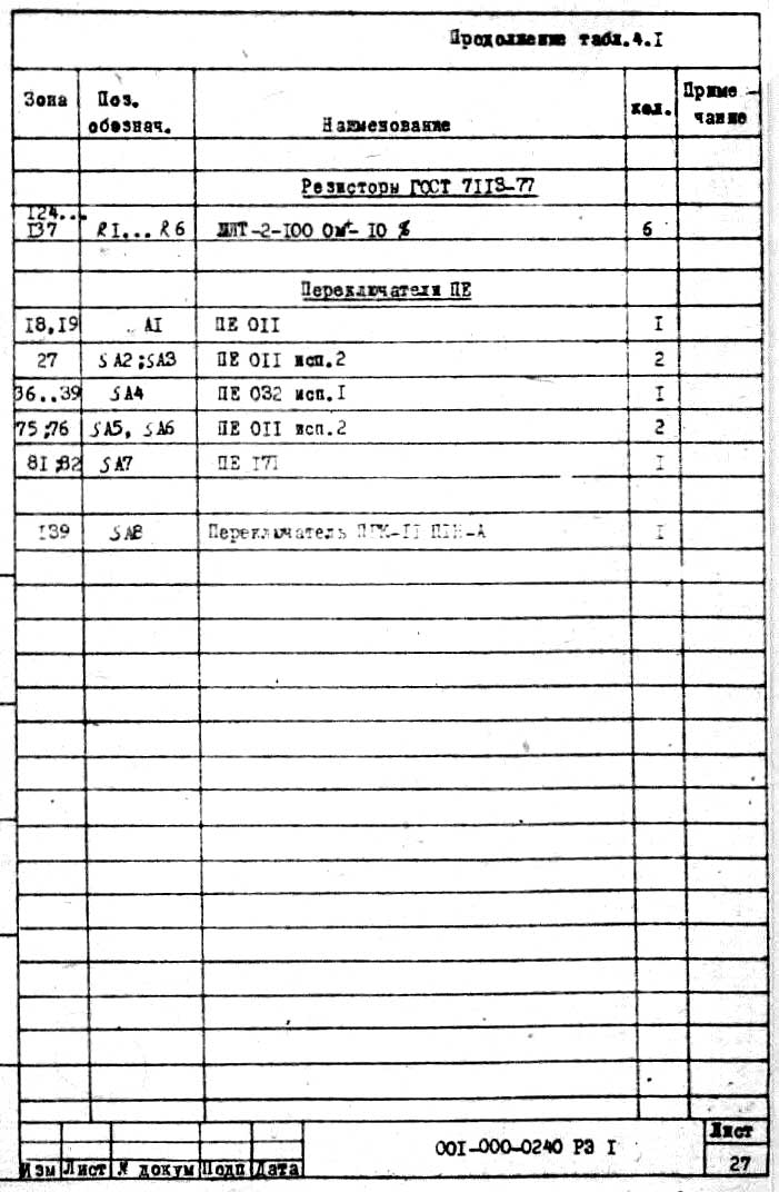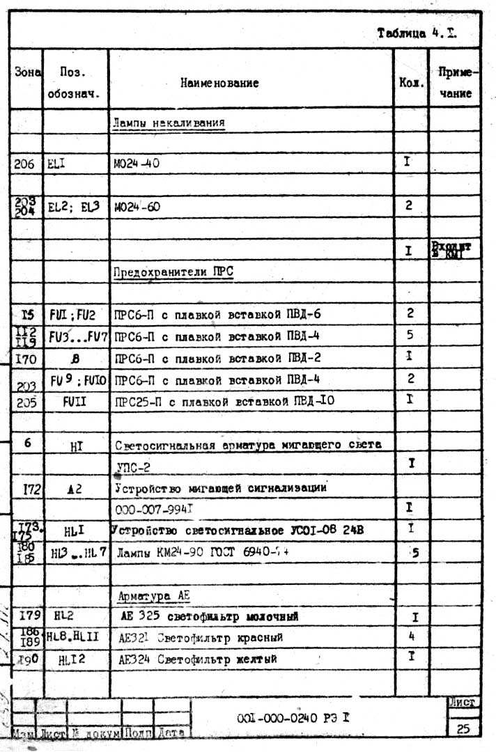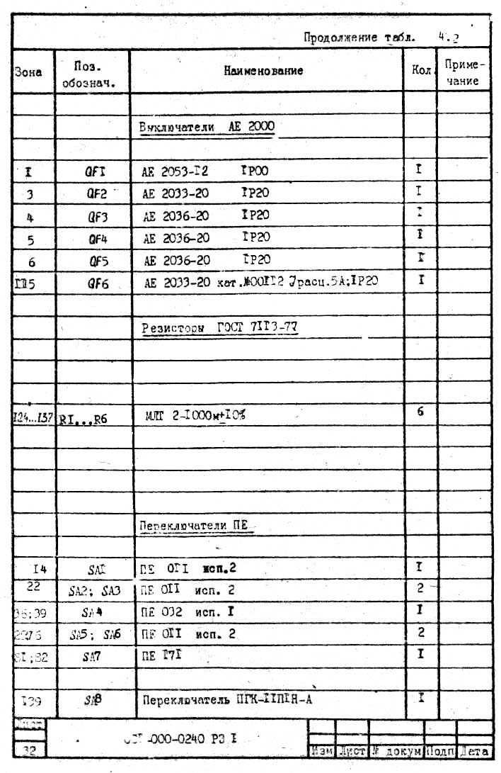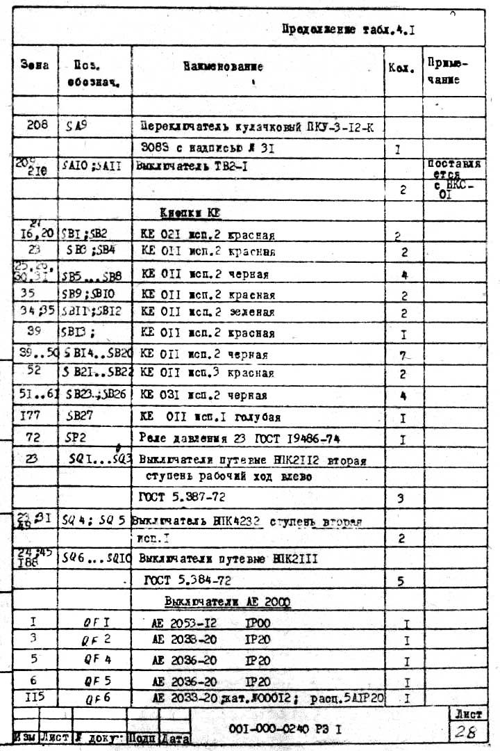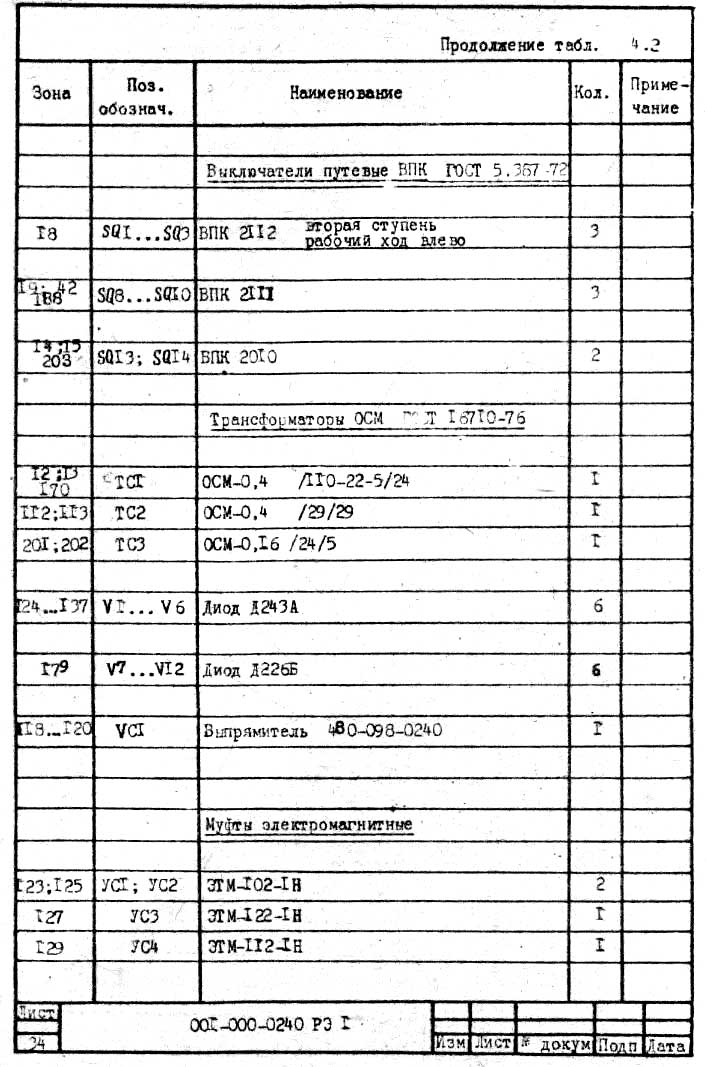 Перелік елементів до схеми електричної принципової верстата 1Б240 наведено у таблиці 4.1. а для верстата 1Б240П у таблиці 4.2.