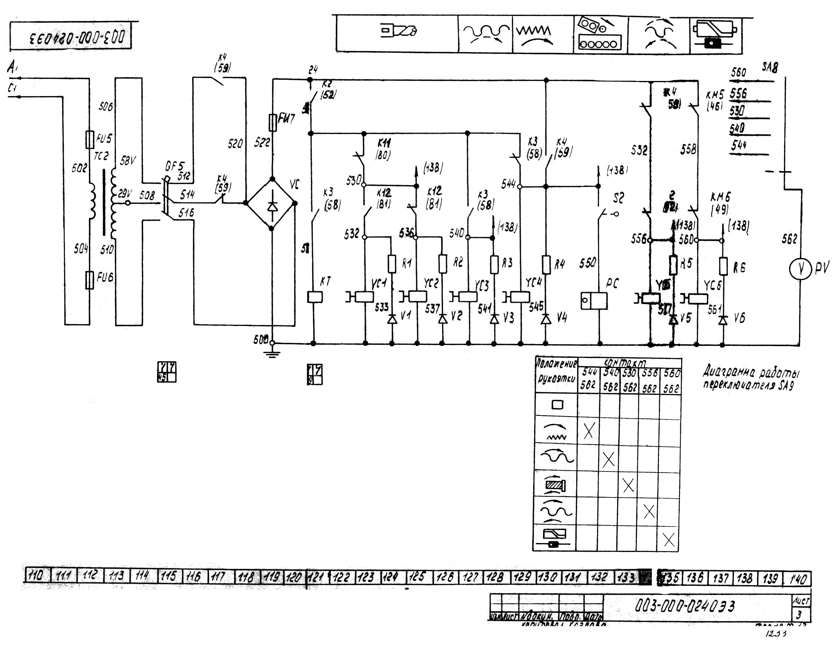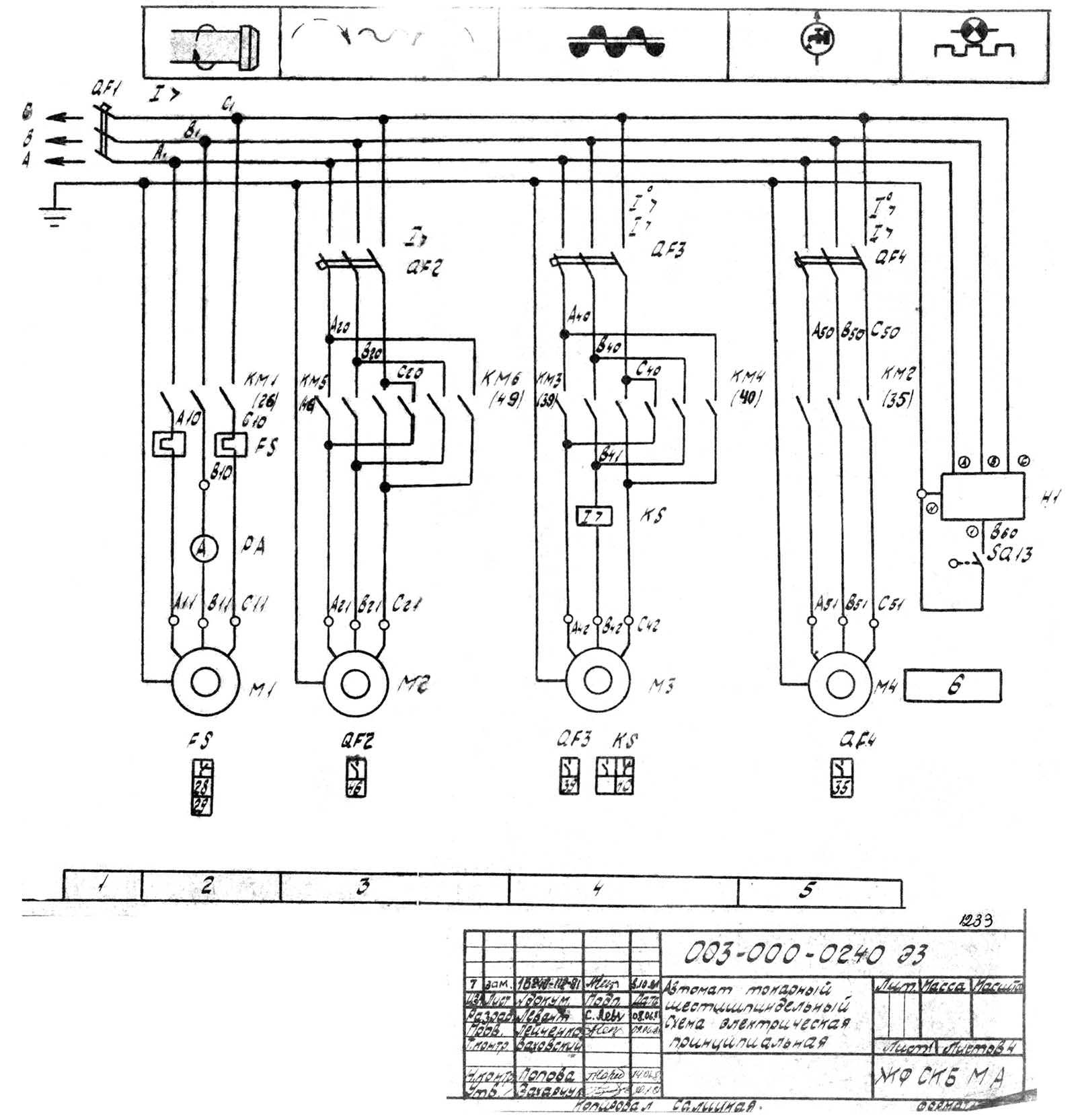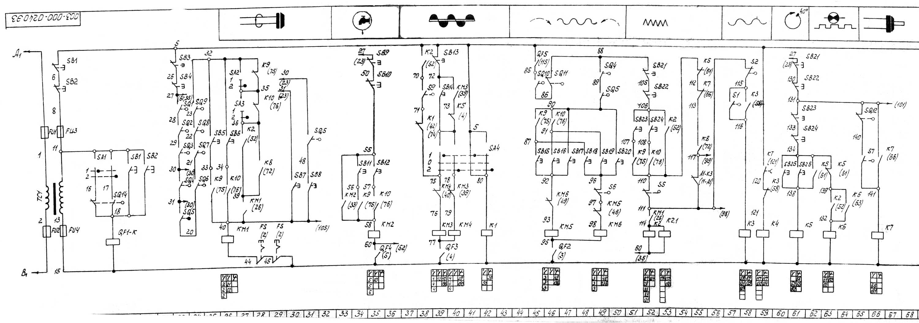 Схема електрична токарного автомата 1Б240. Завантажити у збільшеному масштабі