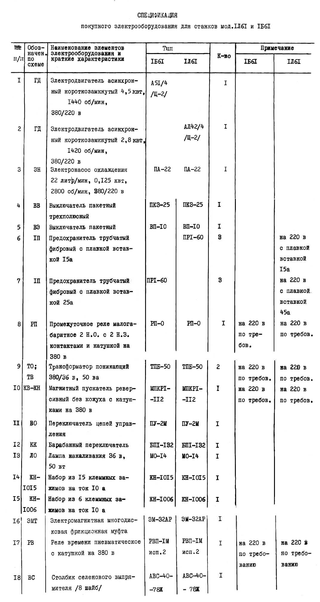 Монтажная електросхема токарно-гвинторізного верстата 1Б61, 1Л61: