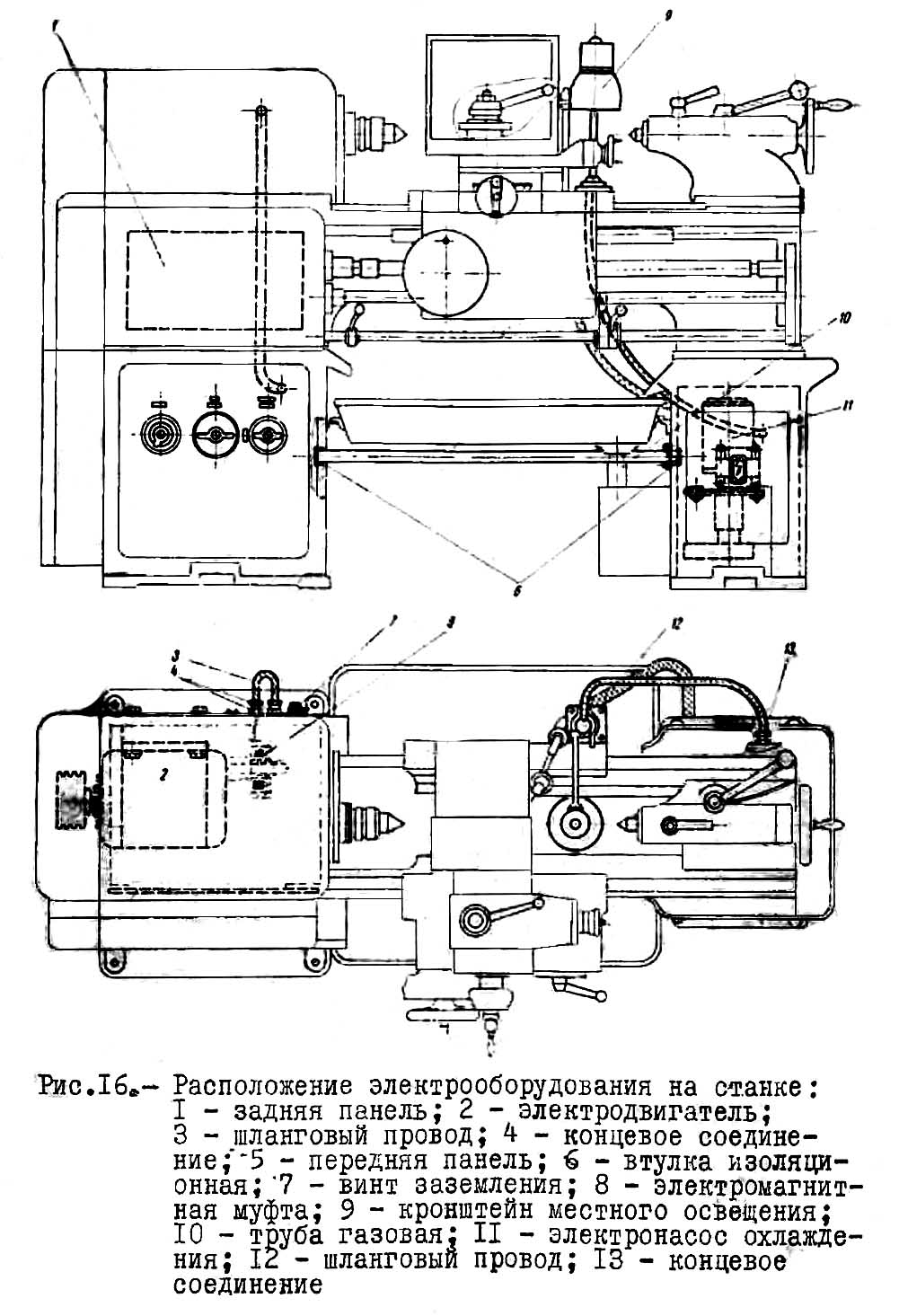 Схема розположення електроустаткування токарно-гвинторізного верстата 1Б61, 1Л61