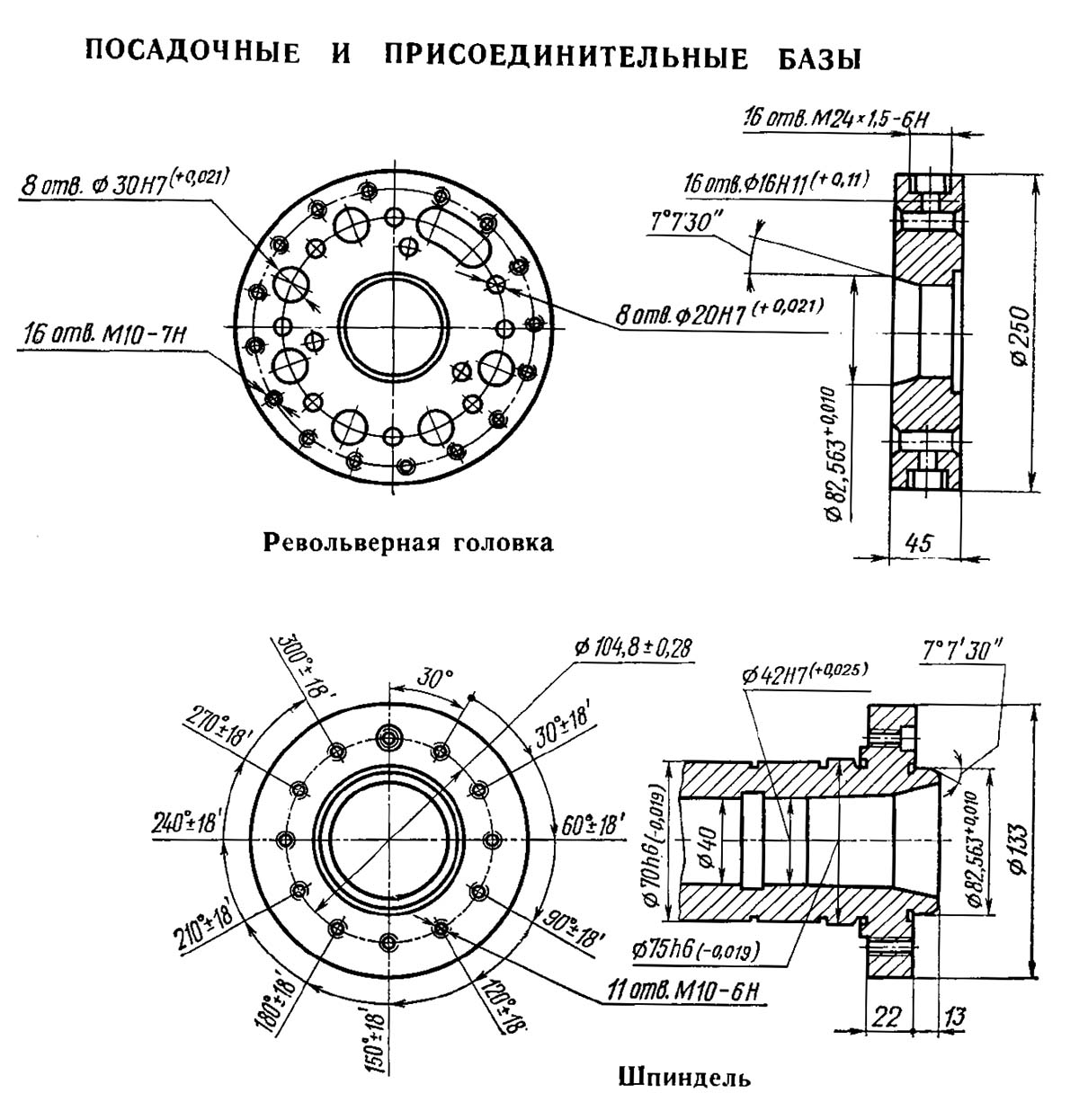 Диаметр отверстий в револьверній головці, мм | 20Н7, 30Н7 | ||
