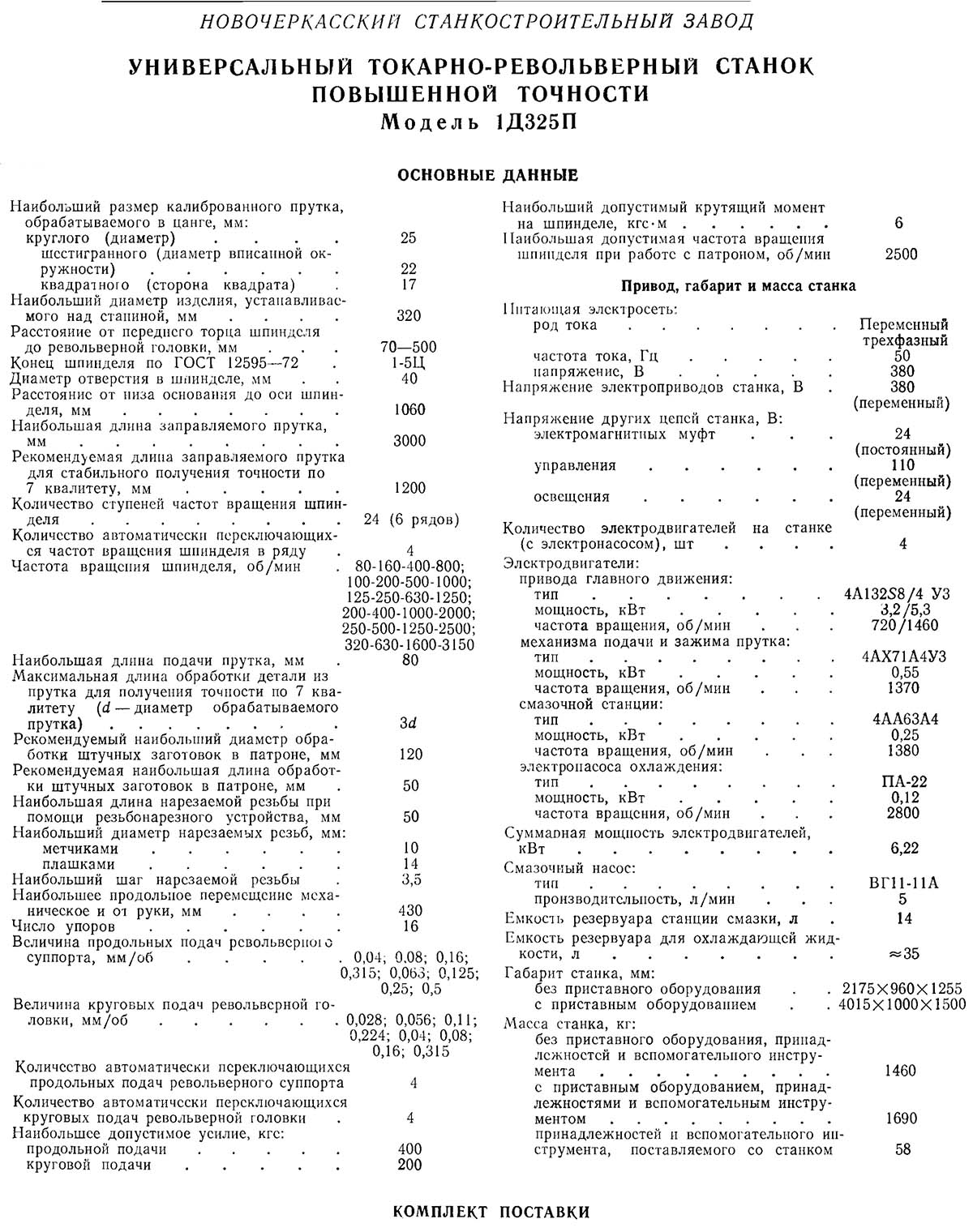 Виробник токарно-револьверного верстата моделі 1Д325п - Новочеркаський верстатобудівний завод , заснований у 1938 році.