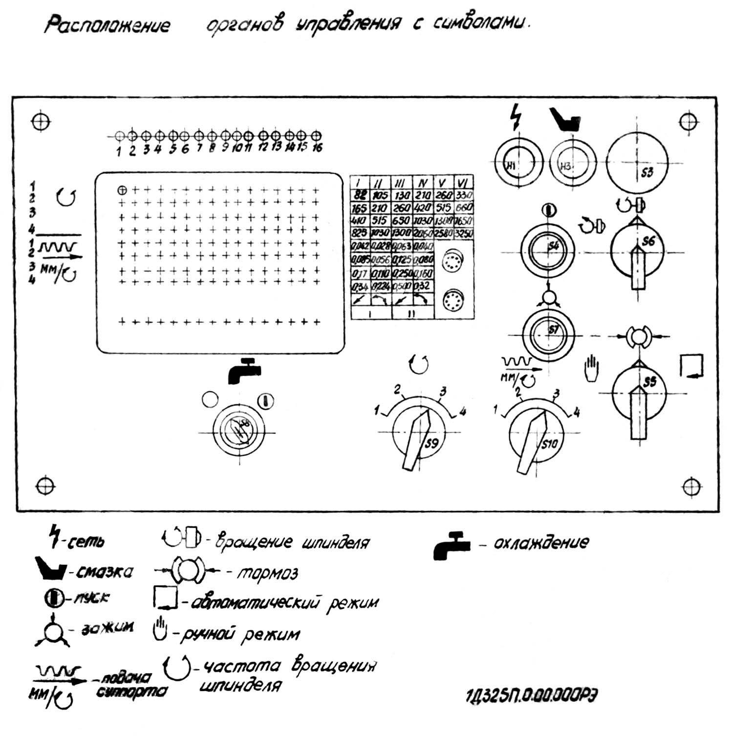 Розташування органів керування токарно-револьверним верстатом 1Д325п