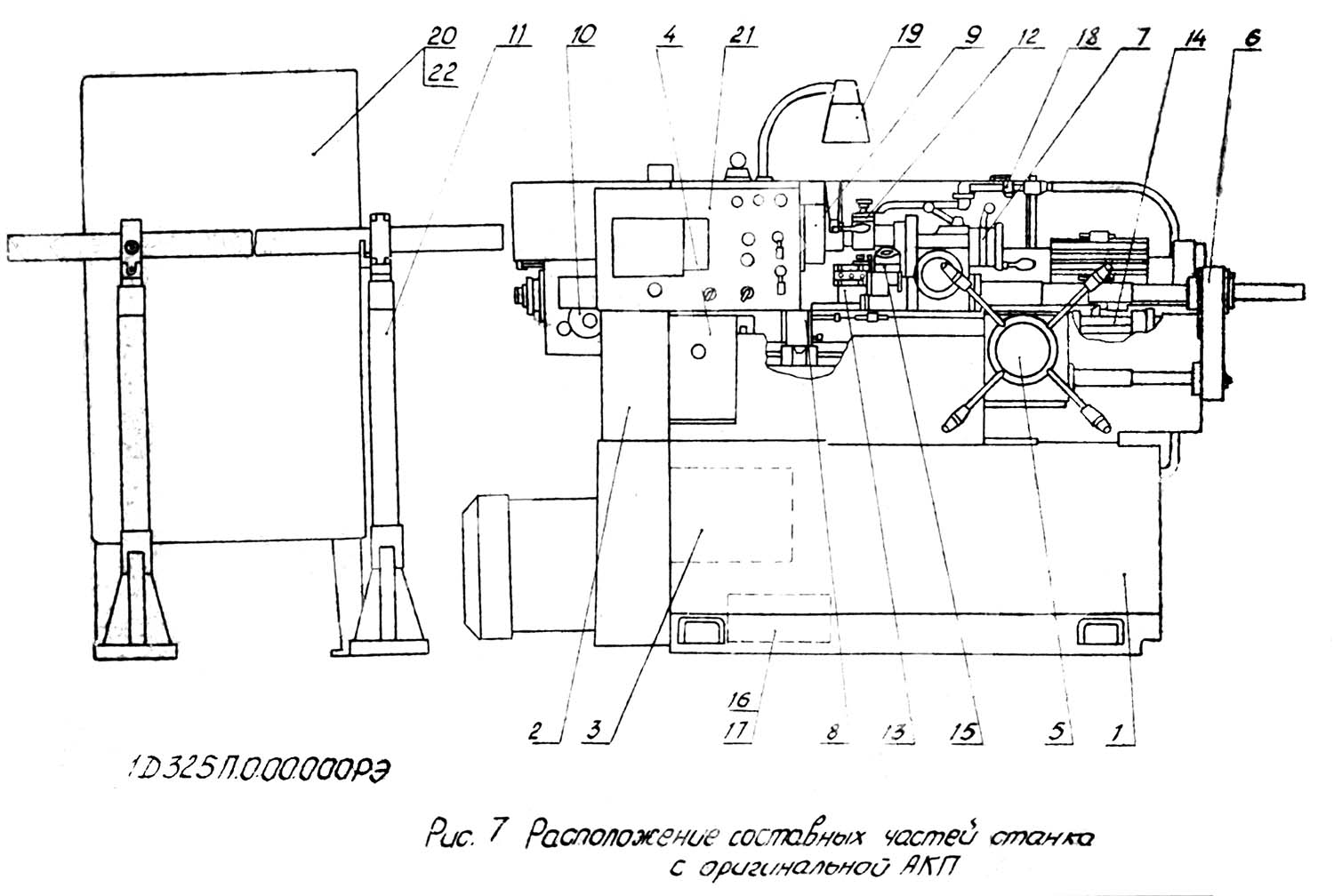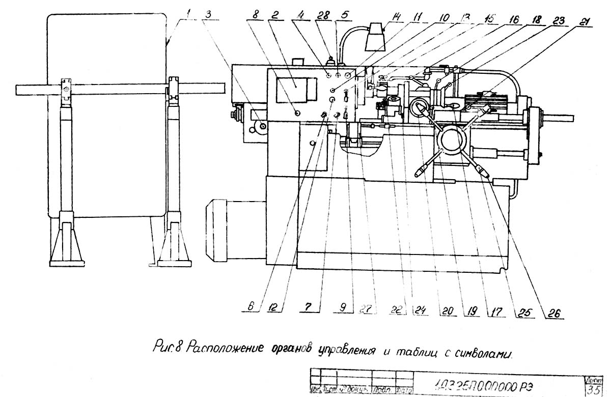 Розташування основних частинин револьверного верстата 1д325п. Завантажити у збільшеному масштабі