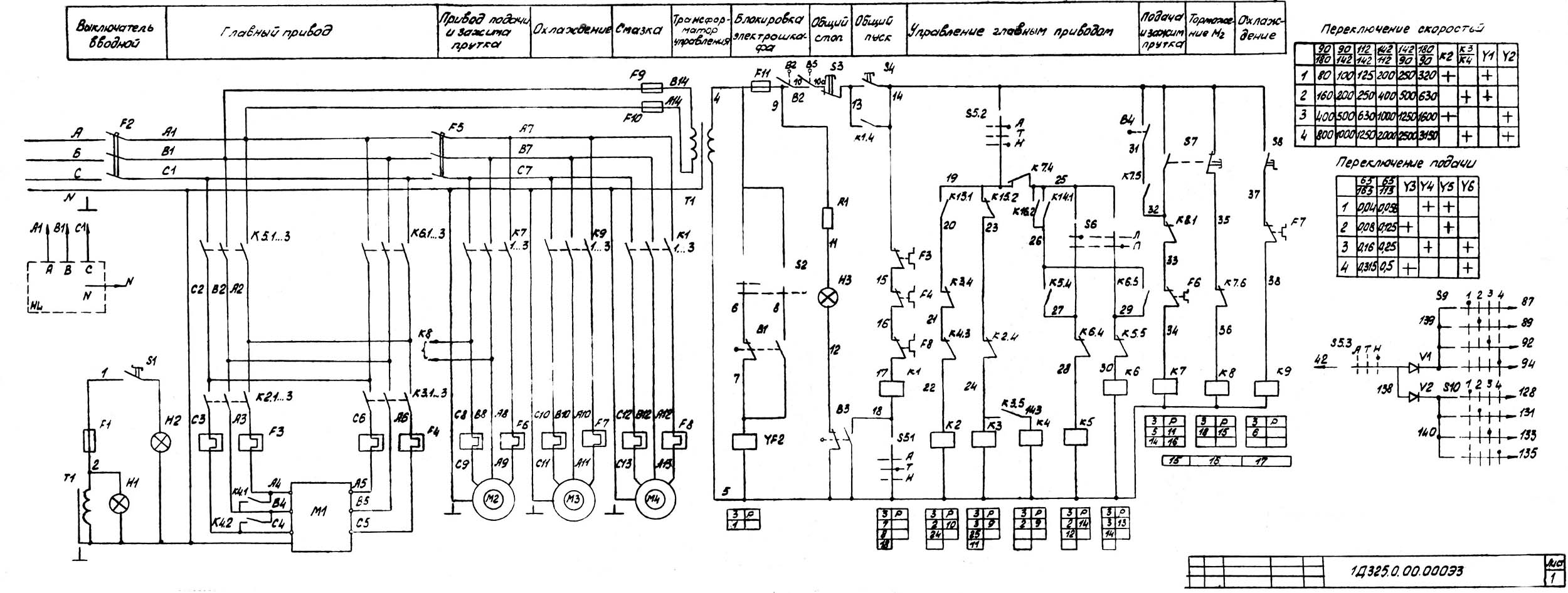 Електрична схема токарно-револьверного верстата 1Д325п. Скачать в увеличенном масштабе