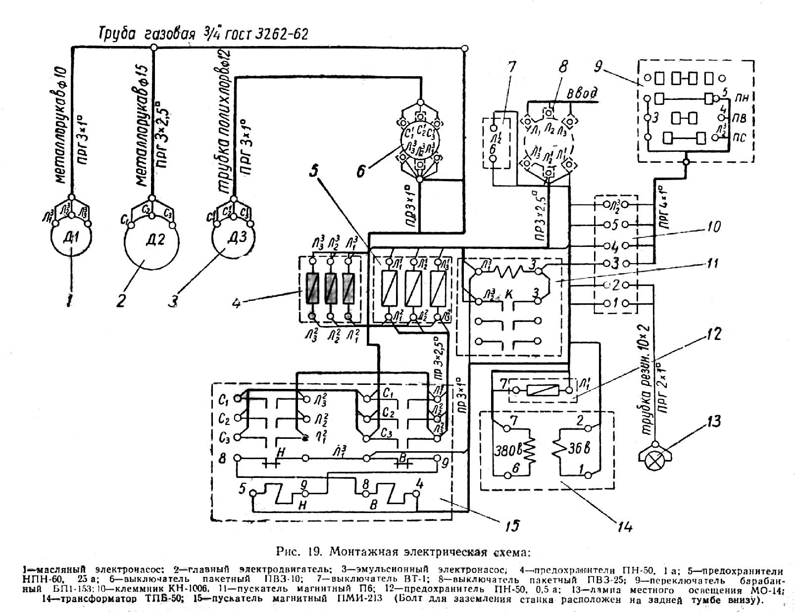 Электропроводка на станке выполнена в газовой трубе, металлорукавах і резиновых шлангах для защиты от механических повреждений, воздействия влаги і прочих внешних причин.