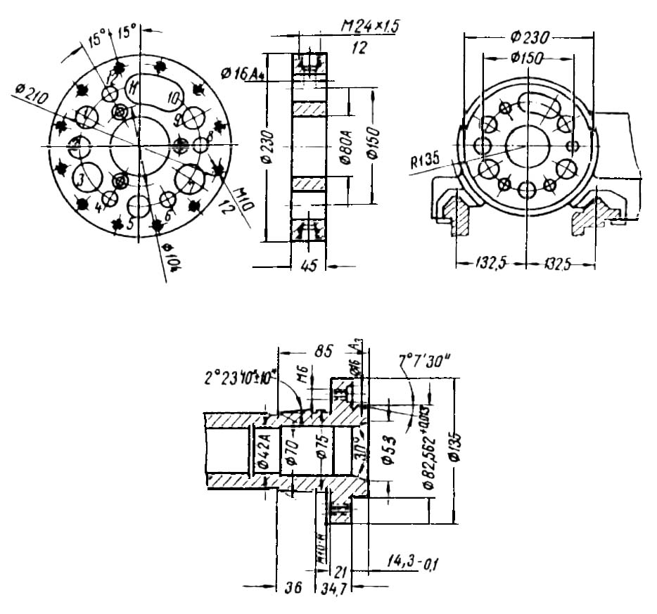 Кінець шпинделя фланцевий згідно з ГОСТ 12595-75. | 2-5C | ||