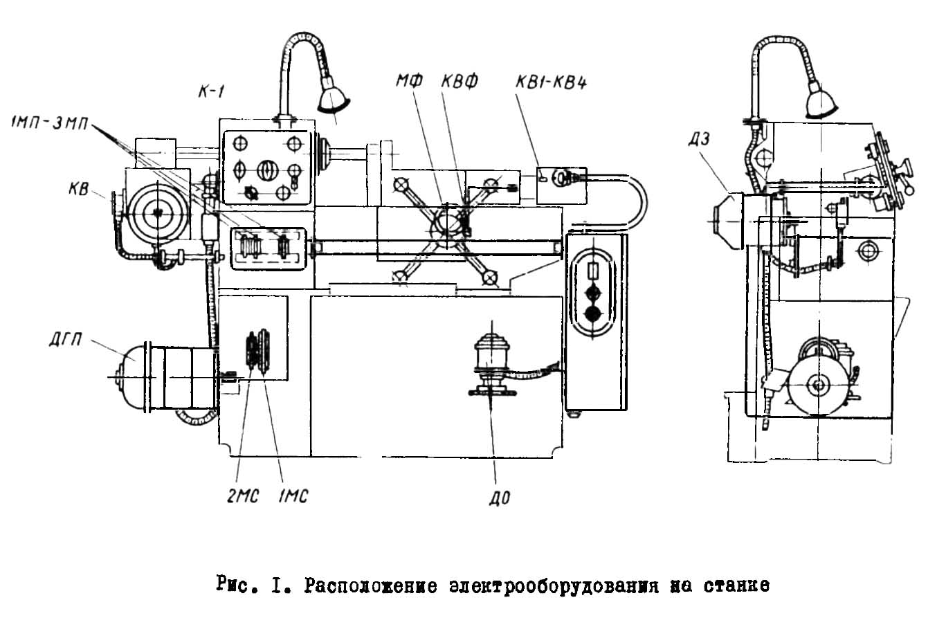Схема розміщення електроустаткування токарно-револьверного верстата 1Г325