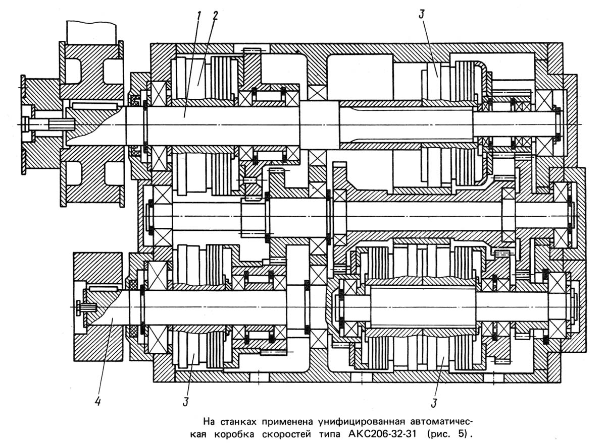 У верстаті використовується автоматична коробка швидкостей АКС206-32-31 або АКП209-32Р виробництва Псковського заводу зубчастиних коліс , що дозволяє перемикати частоту обертання на ходу і під навантаженням.