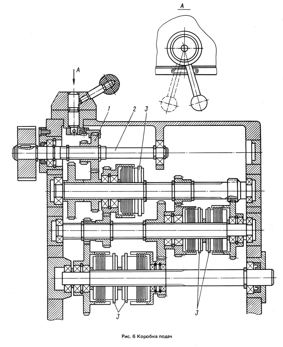 Коробка швидкостей токарно-револьверного верстата 1г340п. Дивитись у збільшеному масштабі