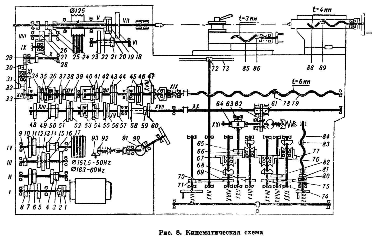 Кінематична схема токарно-гвинторізного верстата 1ис611в