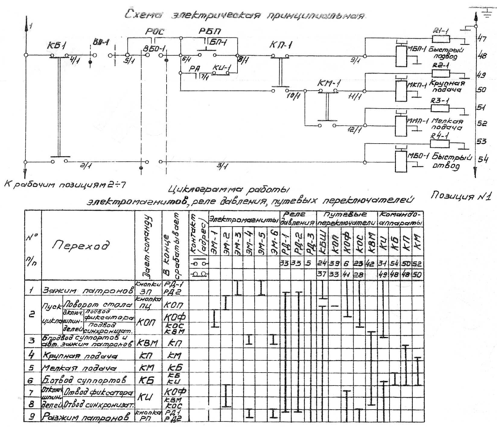 Електричні схеми керування кожної робочої позиції ідентичні і відключаються лише дробовим індексом, що вказує на номер робочої позиції.