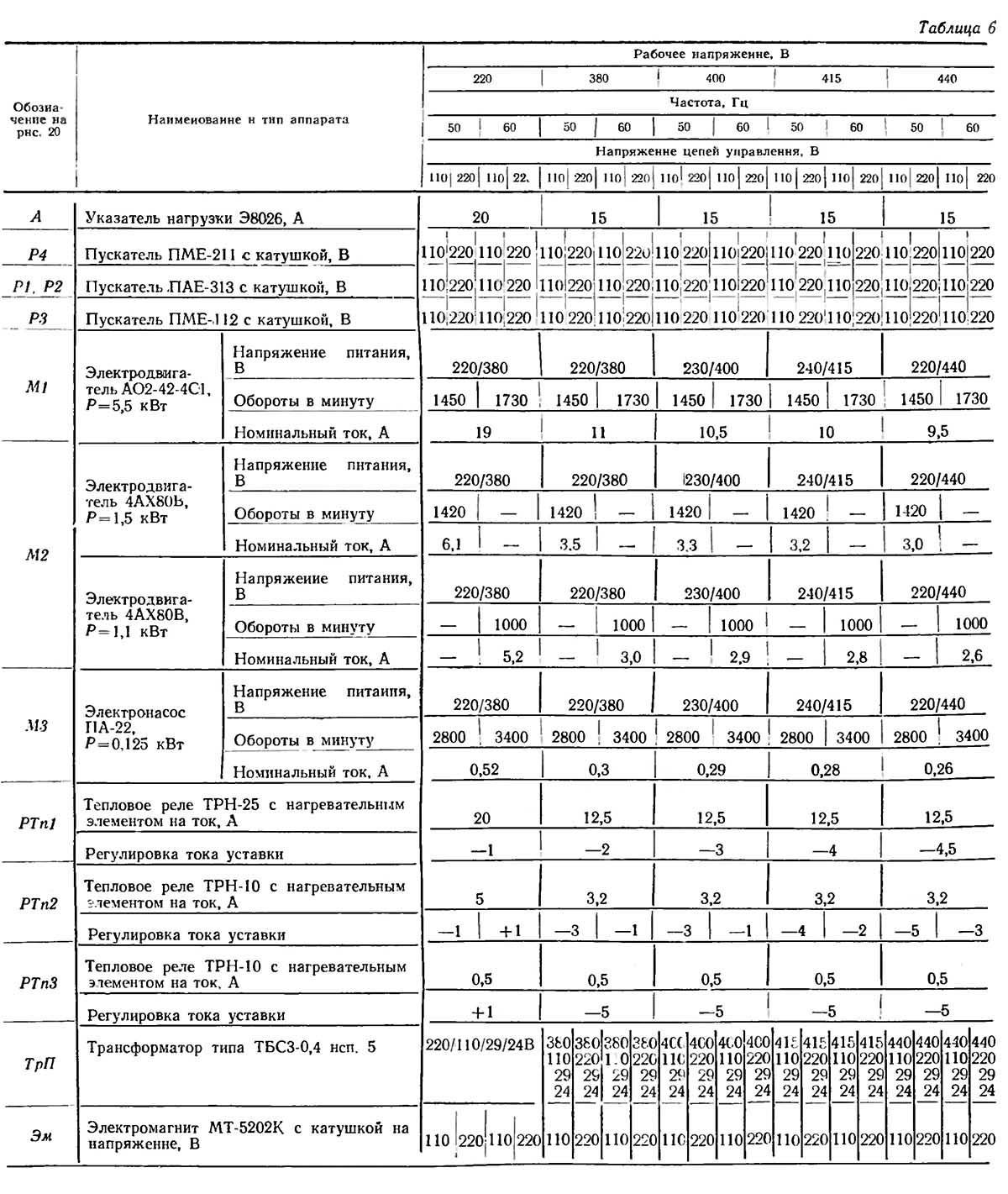 Принципиальная електрична схема приведена рис. 20, условные обозначения, наименование і количество електрического оборудования - в табл. 5, технічна характеристика аппаратов - в табл. 6.