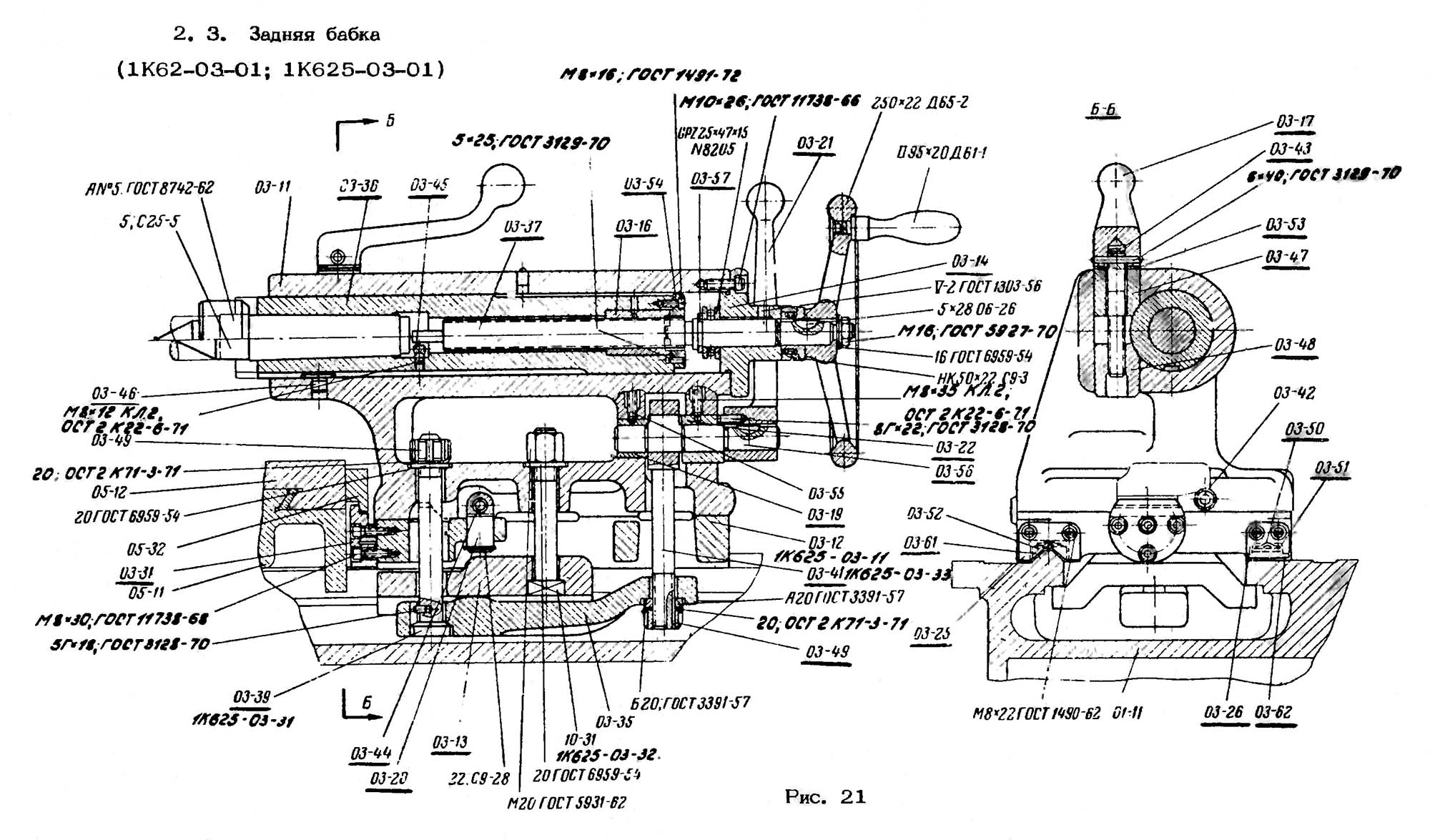 Задня бабка токарно-гвинторізного верстата 1к62
