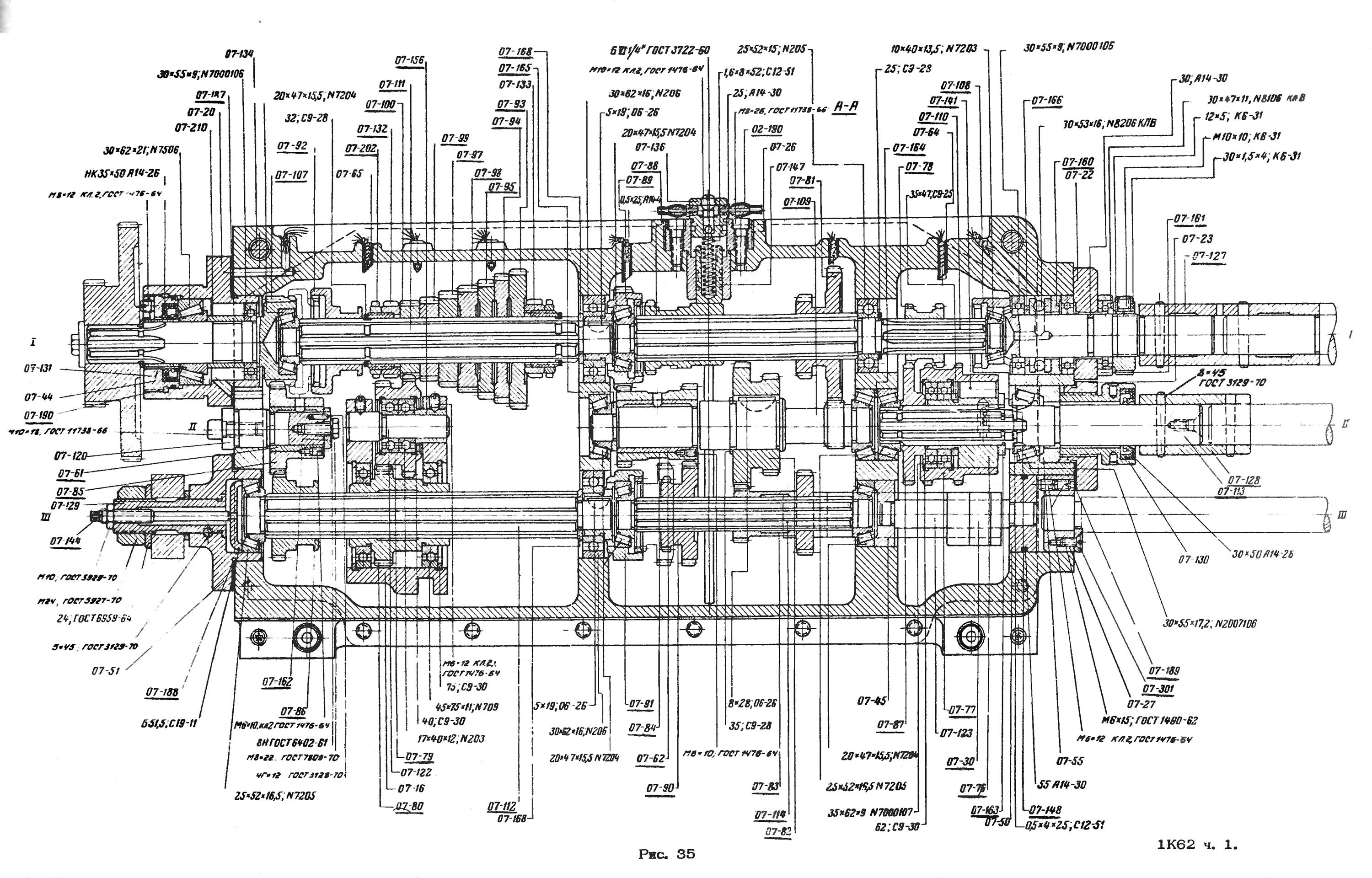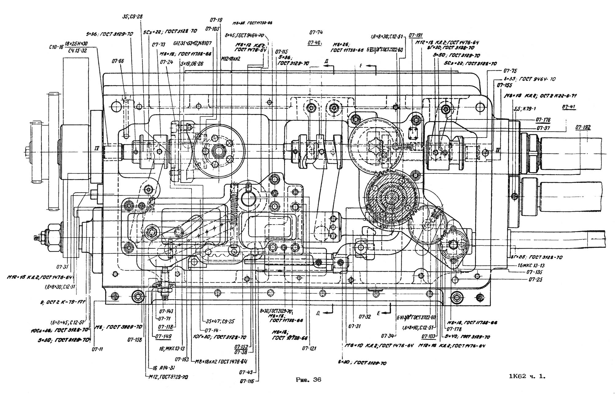 1. Розгортка передньої бабки токарно-гвинторізного верстата 1К62. Дивитись у збільшеному масштабі